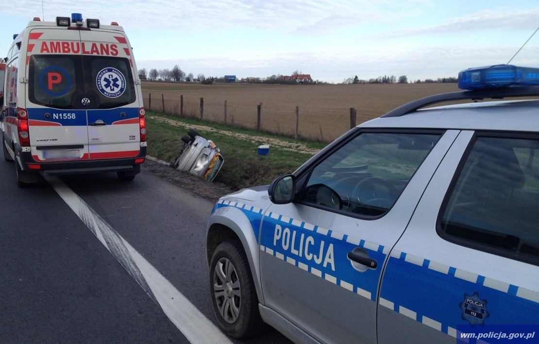 Olsztyn/Barczewo: Nieprawidłowe wyprzedzanie przyczyną dachowania