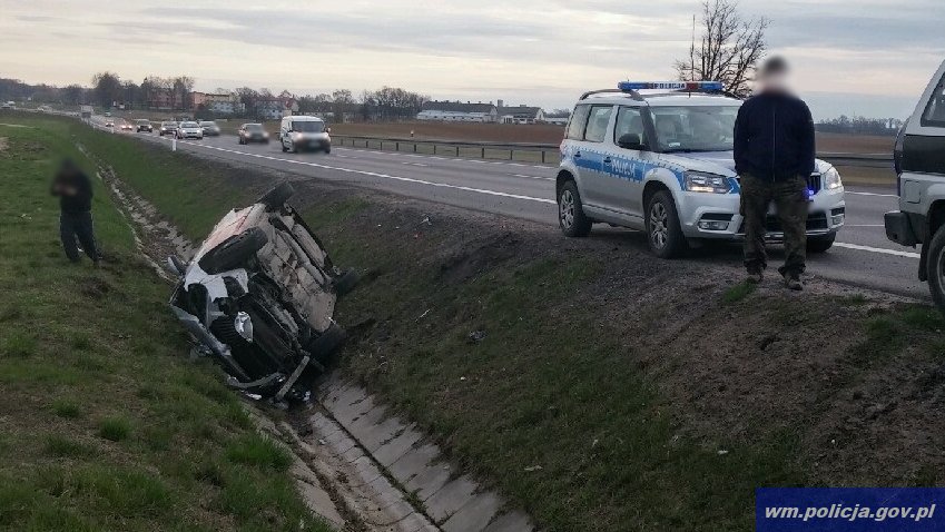 Jak ustalili policjanci pracujący na miejscu, kierujący skodą mężczyzna wyprzedzając kolumnę pojazdów, w celu uniknięcia czołowego zderzenia z pojazdem jadącym z naprzeciwka, nagle zahamował i próbował „schować się” między auta jadące prawym pasem. W wyniku tego manewru zahaczył o tył isuzu, dachował i wpadł do rowu. Mimo, że zdarzenie wyglądało dość poważnie to nikt nie odniósł obrażeń.
