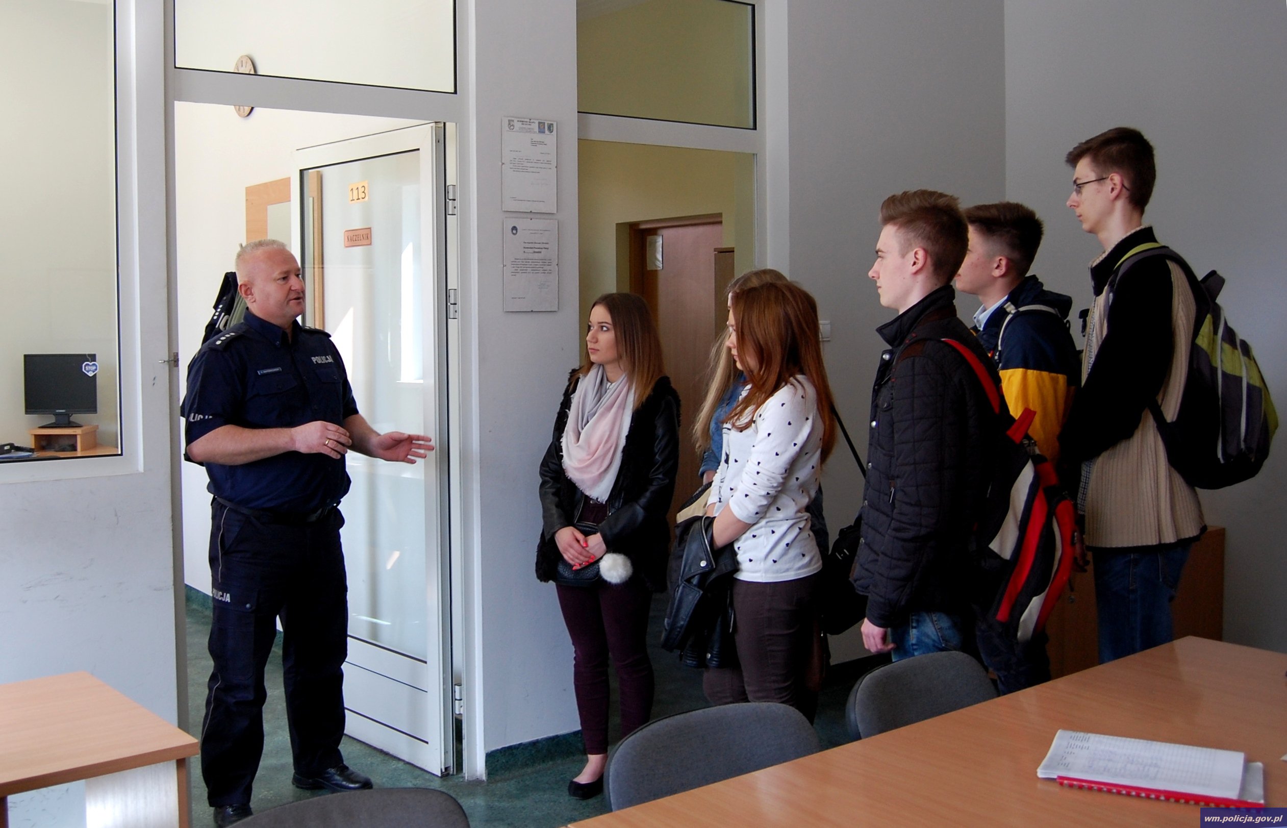 Komendant Powiatowej Policji w Szczytnie insp. Cezary Gołota przywitał gości zwiedzających teren jednostki. Naczelnik Zespołu Patrolowo-Interwencyjnego i Ruchu Drogowego nadkom. Arkadiusz Napiórkowski zapoznał młodzież ze specyfiką pracy policjantów obu pionów. Natomiast kierownik ogniwa wydziału konwojowego nadkom. Sławomir Matuszyk opowiedział o organizowaniu i konwojowaniu osób zatrzymanych a także zaprezentował sprzęt służbowy wykorzystywany przez policjantów w trakcie służby.