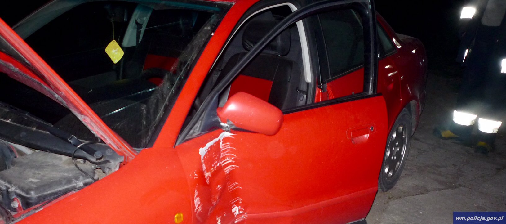 Lidz.Warm.: Pijany, bez uprawnień, „pożyczonym” samochodem wjechał w słup