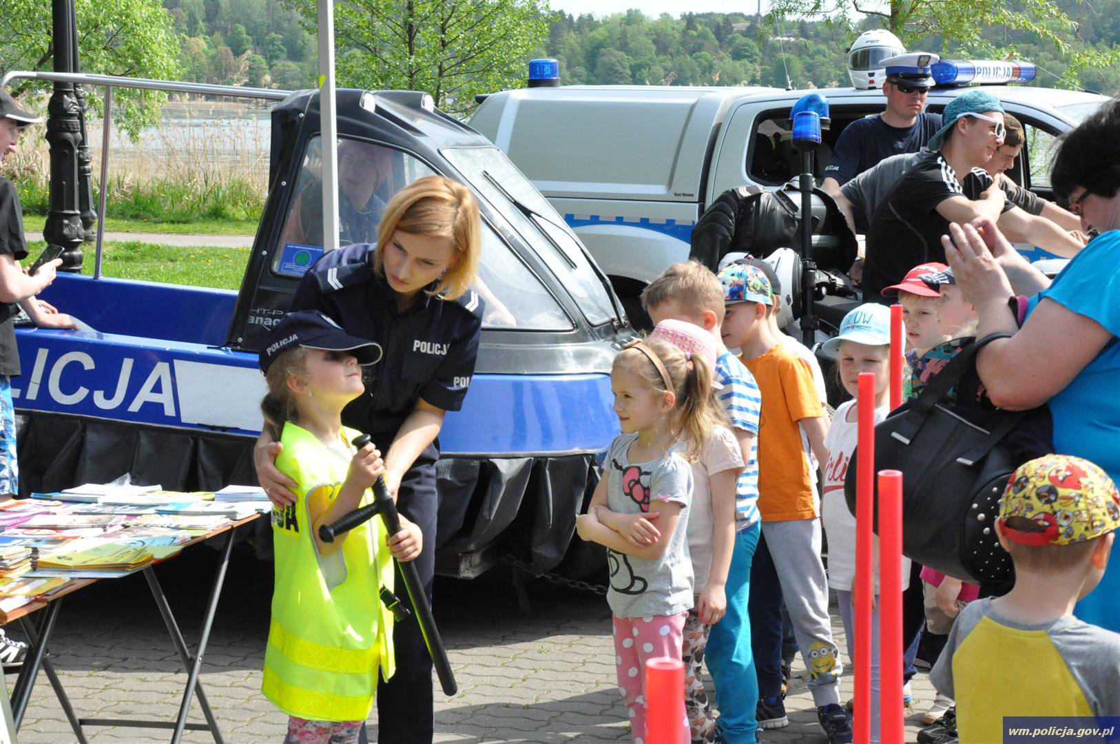W tym czasie w okolicy molo przy Placu im. Jana Pawła II w Mrągowie, ustawione zostały stoiska policyjne oraz WOPR, przy których publiczność zawodów miała okazję poszerzyć swoją wiedzę na temat zagadnień związanych z bezpiecznym wypoczynkiem nad wodą. Ponadto na specjalnie przygotowanym stanowisku profilaktycznym Komendy Powiatowej Policji w Mrągowie, można było zobaczyć m.in. sprzęt, którym posługują się policjanci w codziennej pracy. Swoje stanowisko przygotowali także funkcjonariusze sekcji AntyTerrorystycznej Komendy Wojewódzkiej Policji w Olsztynie, a tam m.in. ambulans pirotechniczny, kombinezon i robota.