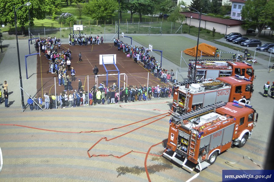 Najpierw wybuchł pożar w szkole. Potem zapadła decyzja o ewakuacji uczniów i nauczycieli. W trakcie gaszenia pożaru na korytarzu znaleziony został niewybuch - tak wyglądał scenariusz ćwiczeń przeprowadzonych w Szkole Podstawowej nr 1 w Piszu. Do działań zaangażowani zostali także funkcjonariusze piskiej komendy oraz policjanci rozpoznania minersko–pirotechnicznego. Ćwiczenia zorganizowane zostały przez Komendę Powiatową Państwowej Straży Pożarnej w Piszu.