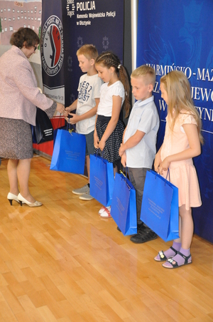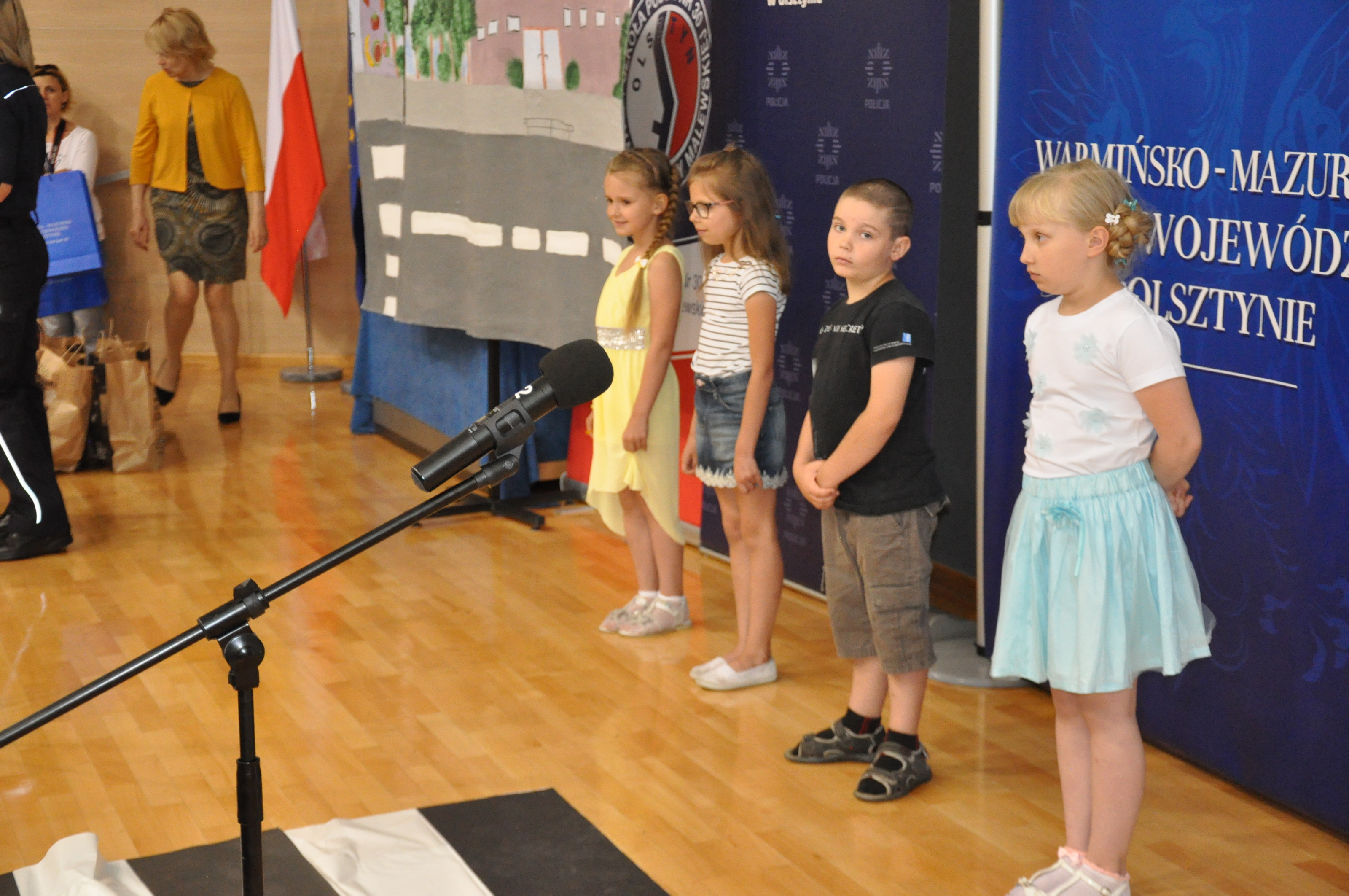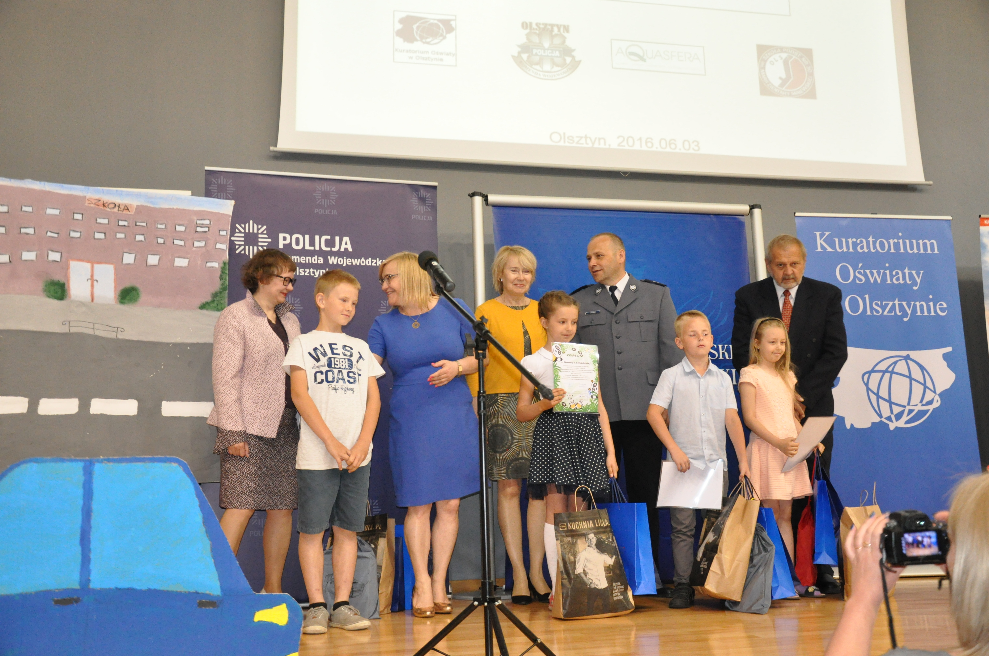 Wszyscy laureaci otrzymali atrakcyjne nagrody, które zostały wręczone przez Bożenę Ulewicz – przedstawiciela Wojewody Warmińsko-Mazurskiego, Beatę Miszczuk- przedstawiciela Warmińsko-Mazurskiego Kuratora Oświaty, Wiesława Wiśniewskiego przedstawiciela Warmińsko-Mazurskiego Stowarzyszenia na rzecz Bezpieczeństwa, Annę Staryk dyrektor SP nr 30 w Olsztynie oraz kom. Mariusza Zielińskiego reprezentującego Komendanta Wojewódzkiego Policji w Olsztynie.