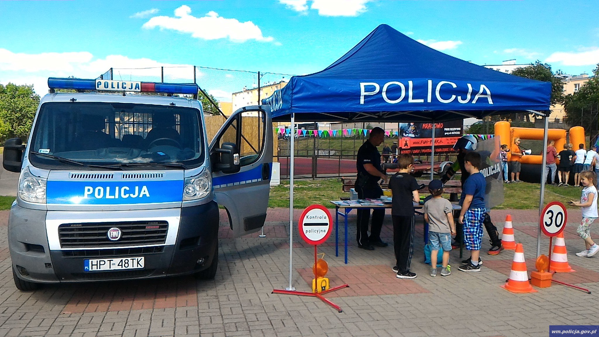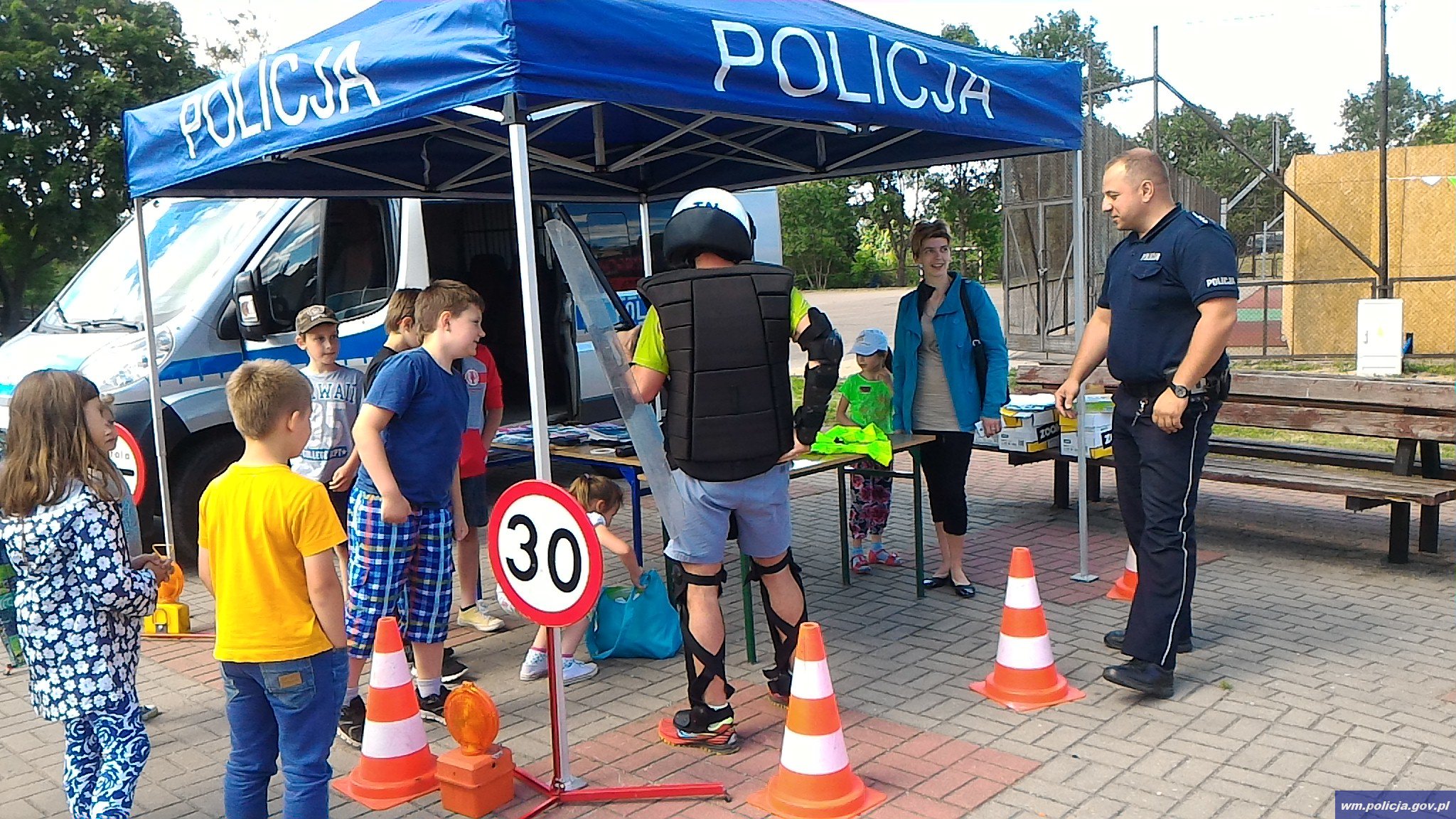 Podczas festynu uczniowie mieli okazję poznać pracę policjantów. W stworzonym przez funkcjonariuszy punkcie, zaprezentowany został policyjny radiowóz, a także sprzęt, który służy im w codziennej pracy oraz materiały edukacyjne dotyczące bezpiecznego wypoczynku podczas wakacji. Podczas spotkania każdy mógł osobiście sprawdzić, jak działają poszczególne przyrządy. Dzieci mogły również wsiąść do radiowozu i obejrzeć go od wewnątrz.