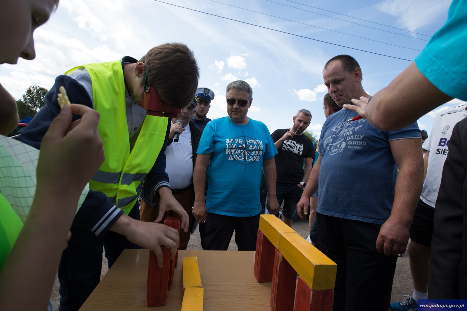 Wczorajsze popołudnie było zarezerwowane na wspólna zabawę i wypoczynek dla całych rodzin. Najmłodsi mogli rywalizować podczas udziału w wyścigu rowerowym przeplatanym z biegiem z rowerem oraz strzałem piłką do bramki. Wszyscy uczestnicy pikniku mogli wziąć udział w teście wiedzy z zakresu ruchu drogowego. Za poprawną odpowiedź można było wygrać różne elementy odblaskowe m. in. opaski, zawieszki dla najmłodszych w kształcie misia, torby, kamizelki. Dorośli mogli sprawdzać swoje umiejętności w jeździe sprawnościowym samochodem z kołem Stewarda. Jedna zanim wsiedli za kierownicę zostali przebadani przez policjantów na stan trzeźwości, a następnie zbudować wieże z klocków w alkogoglach.