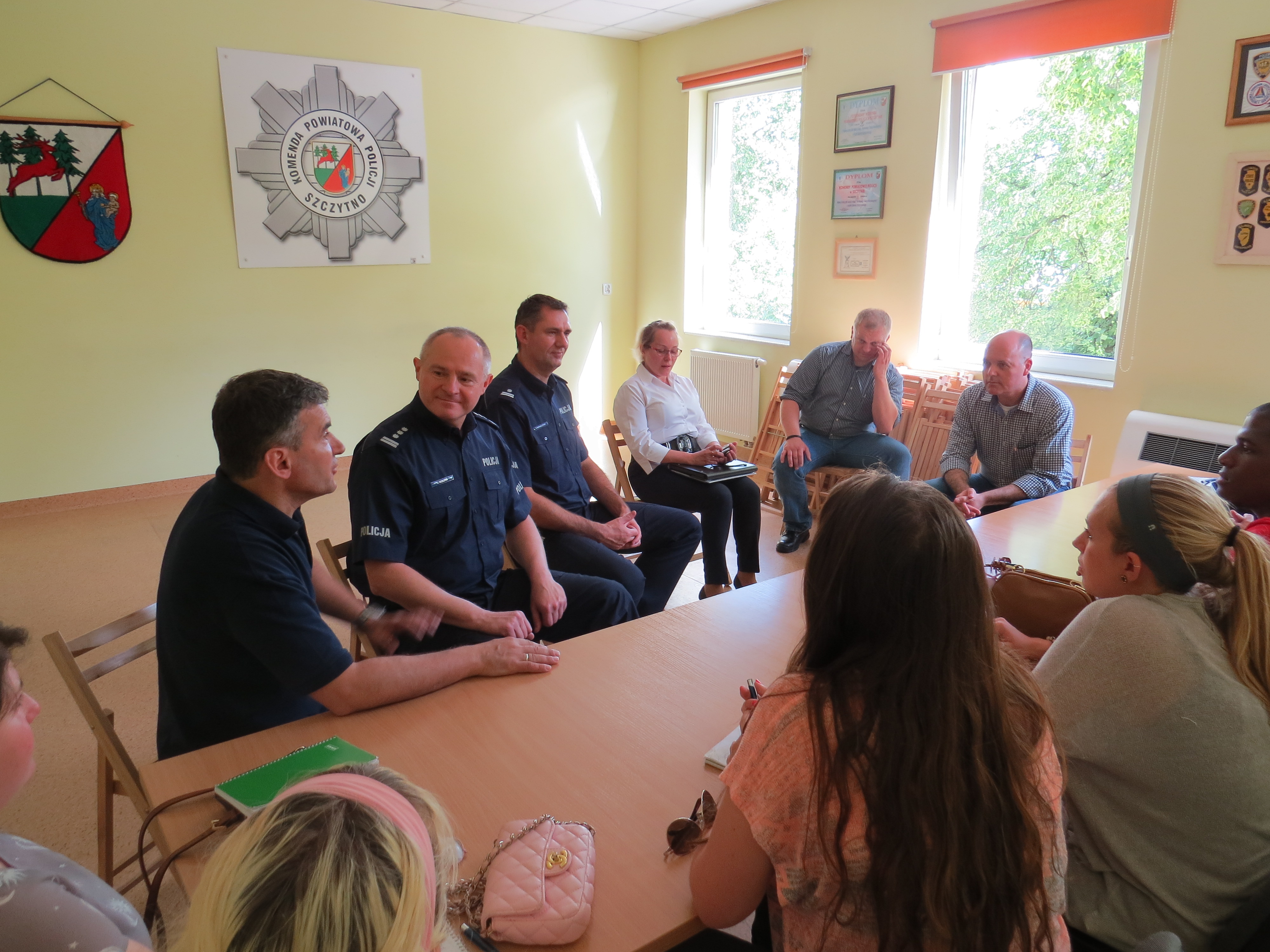 Komendę Powiatową Policji w Szczytnie odwiedzili studenci Uniwersytetu w New Haven w stanie Connecticut w USA. Goście przebywali w Szczytnie na zaproszenie Komendy Głównej Policji i Wyższej Szkoły Policji w Szczytnie w ramach wymiany szkoleniowej. Głównym celem wizyty było zapoznanie się z funkcjonowaniem polskiego systemu wymiaru sprawiedliwości w tym sądów i zakładów penitencjarnych. Wizytę w jednostce złożyli, aby poznać pracę polskich policjantów. Odwiedzający zobaczyli min. Przyjazny Pokój Przesłuchań Dzieci i sprzęt jaki funkcjonariusze wykorzystują w codziennej służbie. Atrakcją dla gości był samochód służący do konwojowania osób zatrzymanych. Z gośćmi spotkał się również Komendant Powiatowy Policji w Szczytnie insp. Cezary Gołota, który przedstawił strukturę jednostki, zaprezentował zadania jakie wykonują policjanci, a także odpowiedział na wiele pytań dotyczących funkcjonowania szczycieńskiej Policji.