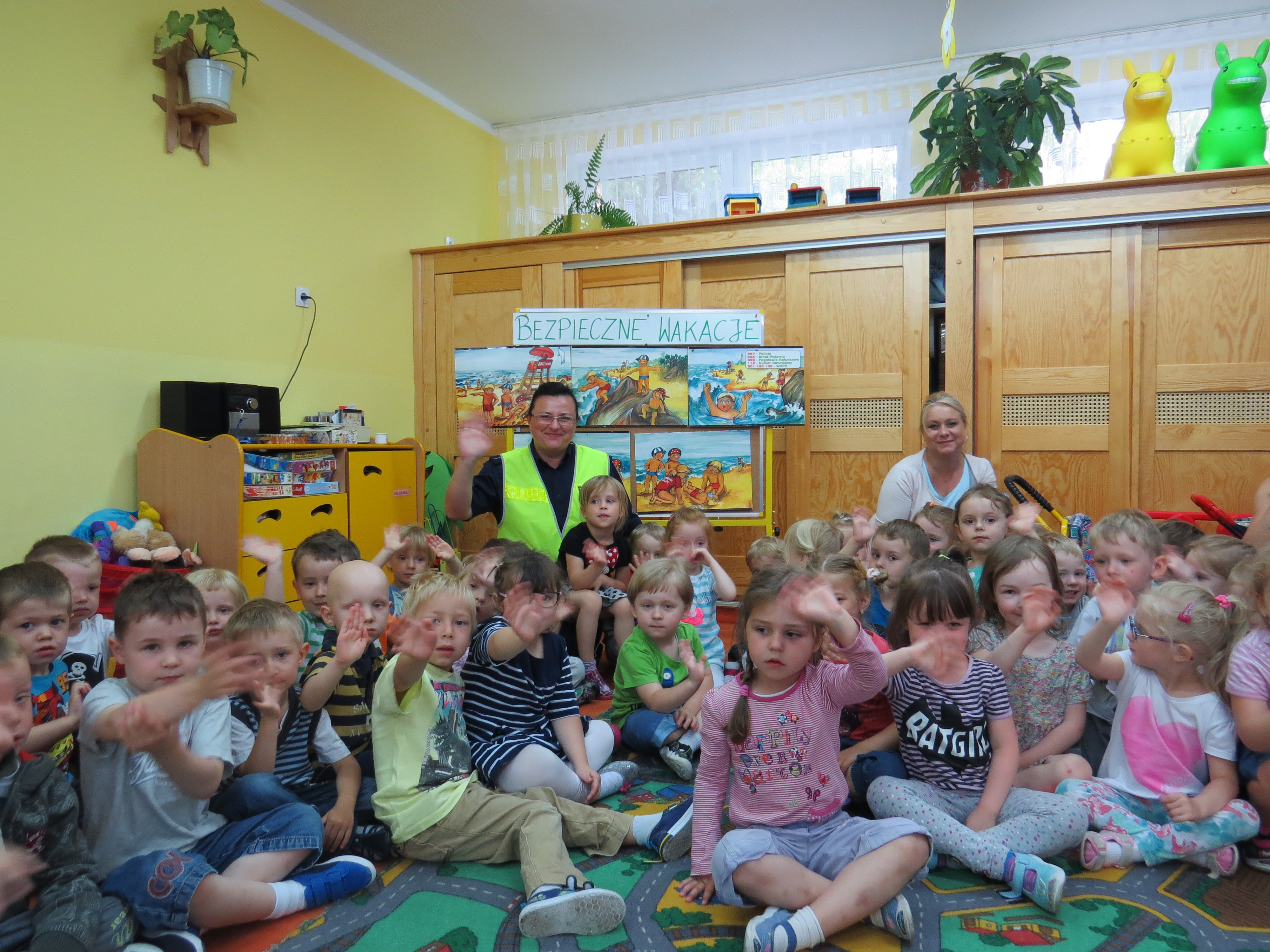 Funkcjonariuszka rozmawiała z 3-, 4- i 5-latkami jak bezpiecznie spędzać czas, na co szczególnie uważać w trakcie wakacji i gdzie szukać pomocy w razie zaistnienia jakiegoś zagrożenia.