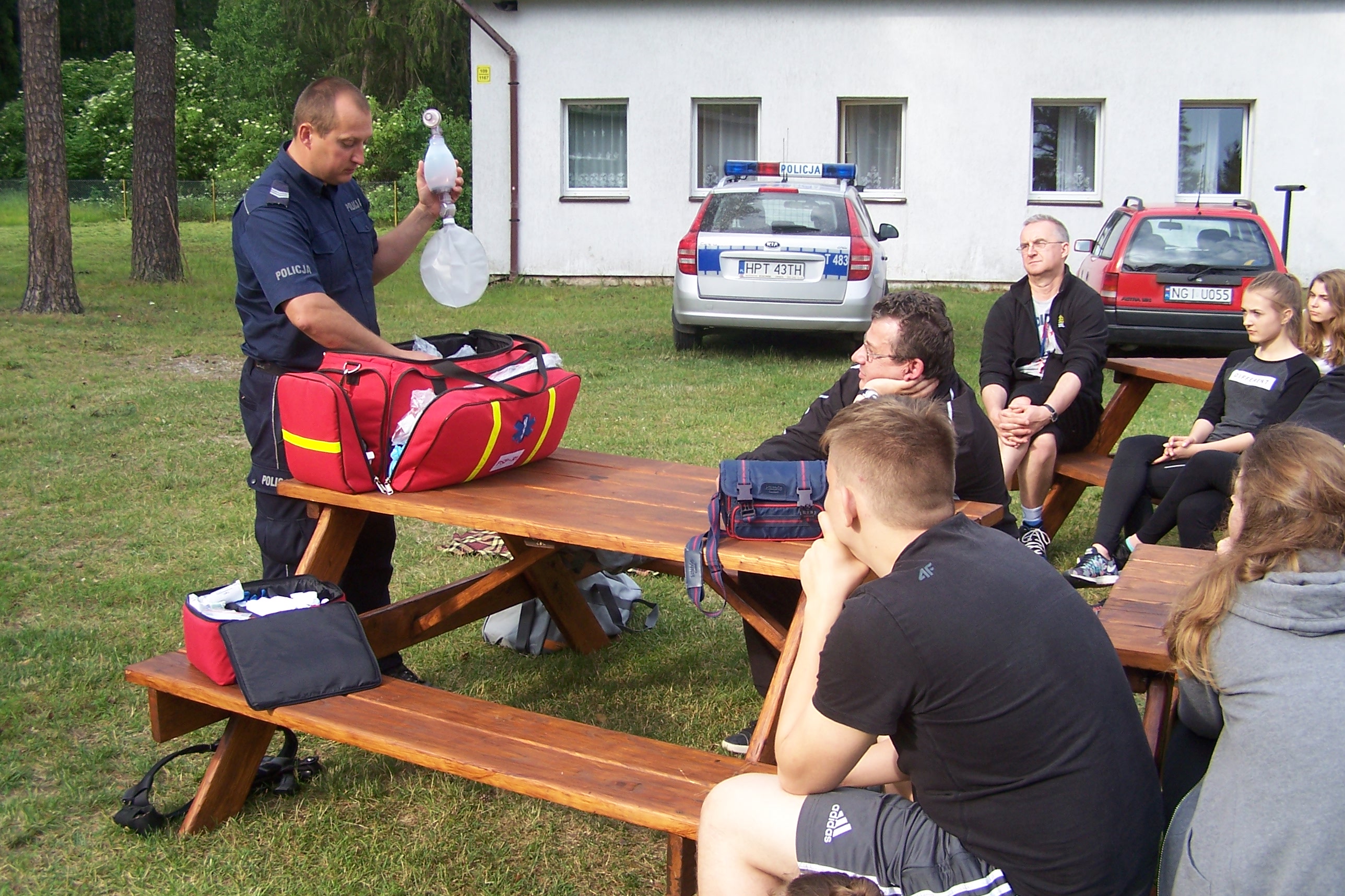 Wczoraj węgorzewscy policjanci odwiedzili klasę licealną o profilu policyjno-sportowym. Młodzież znajdował się na obozie w Żabice. Na wstępie policjanci z Komendy Powiatowej Policji w Węgorzewie przypomnieli młodzieży numery telefonów alarmowych, jak również to, co należy powiedzieć dzwoniąc po pomoc do służb ratowniczych.