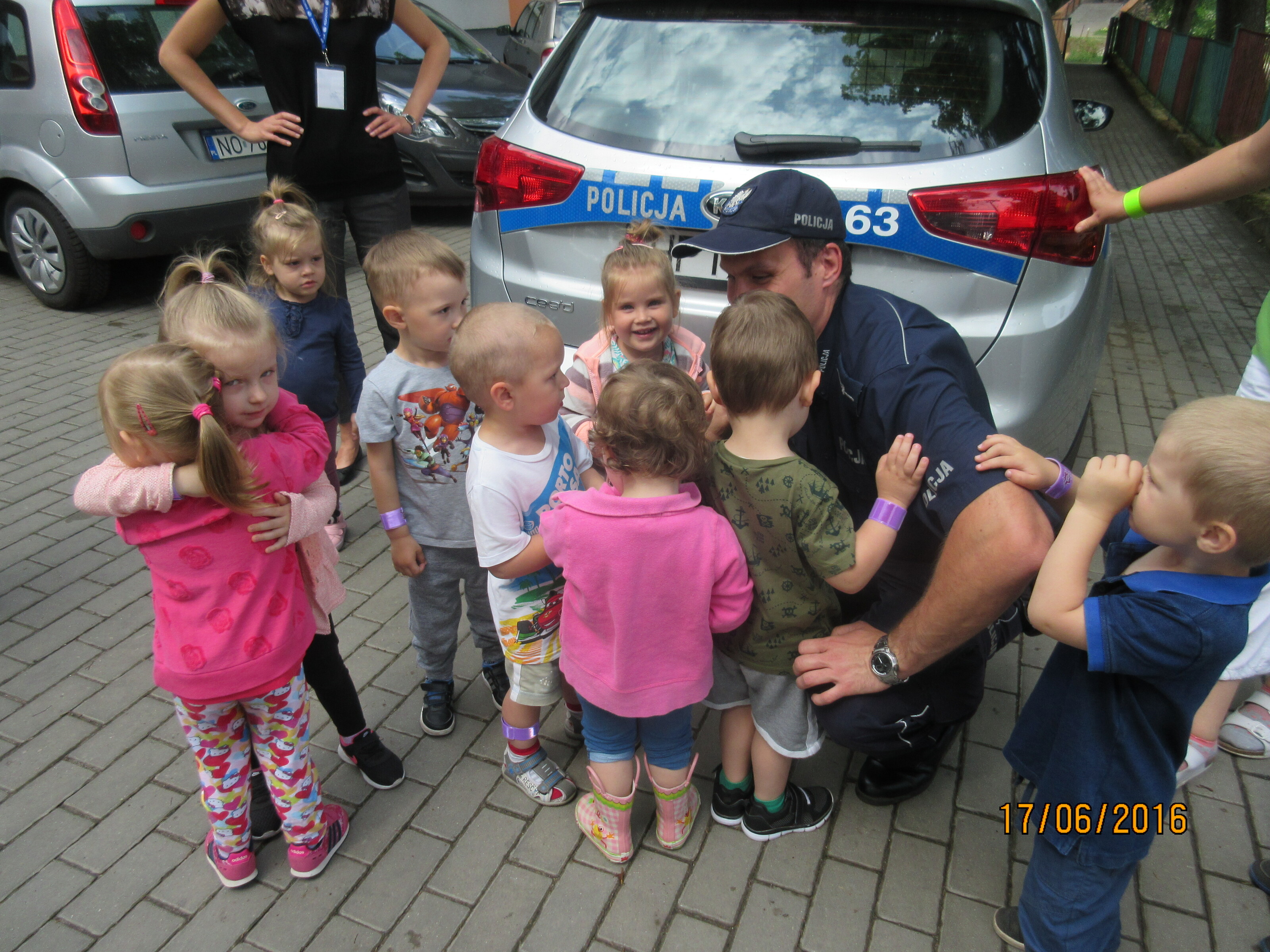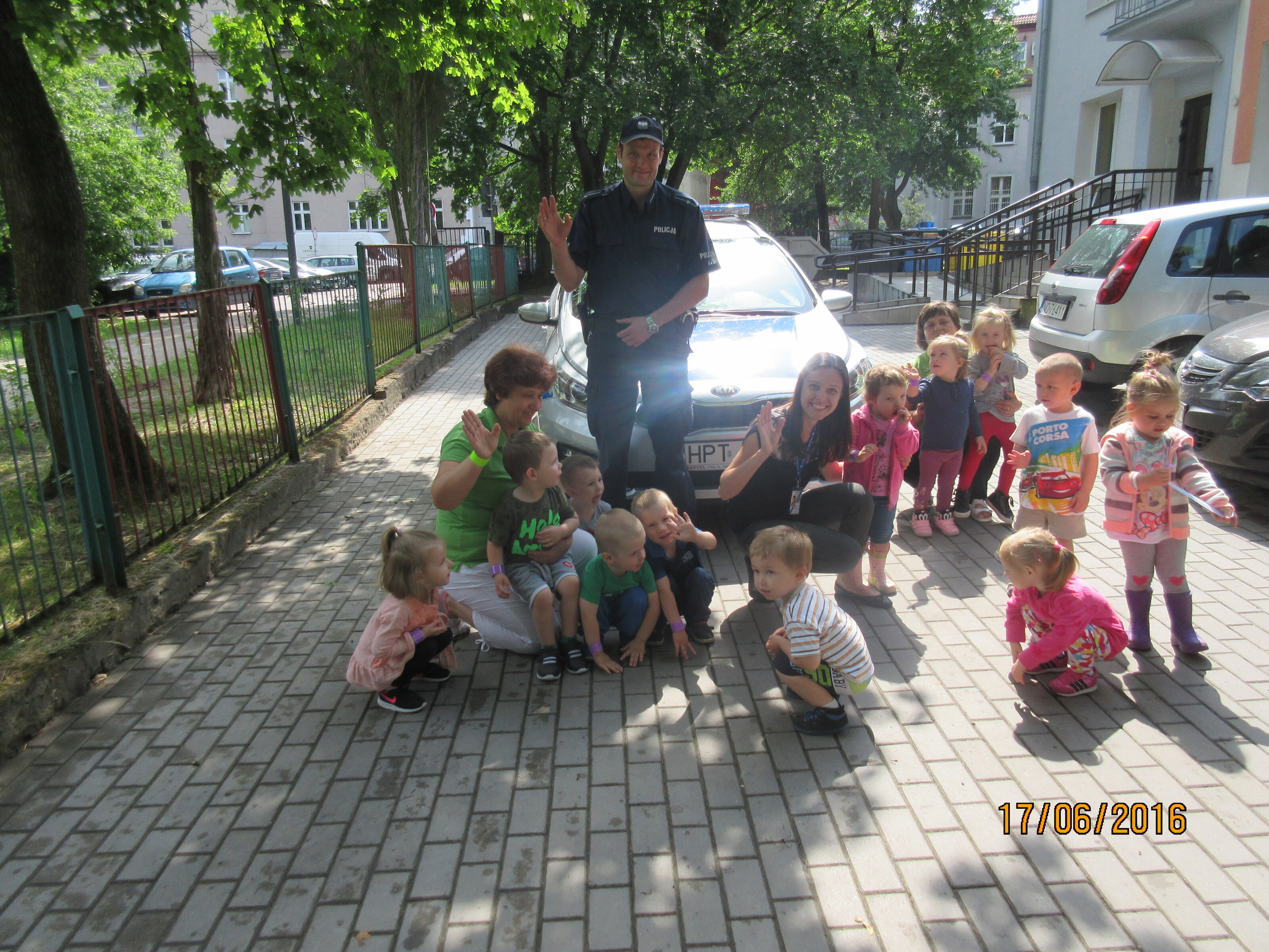 Dzieci ze Żłobka Miejskiego Nr 3 w Olsztynie dzięki swoim opiekunkom przez tydzień poznawały zawód policjanta. Oglądały rysunki, na których przedstawieni byli umundurowani funkcjonariusze, słuchały opowiadań, których bohaterowie potrzebowali pomocy Policji, a także poznawały zasady bezpiecznego zachowania. Na zakończenie cyklu spotkań czekała na dzieci niespodzianka – spotkanie z policjantem!