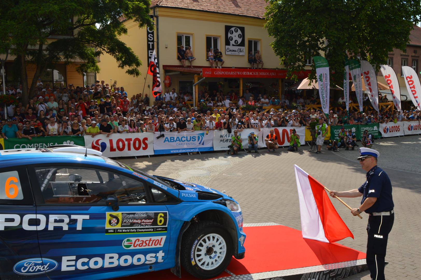 Insp. Tomasz Klimek dał symboliczny znak do startu w Rajdzie załodze w składzie Thierry Neuville/Nivlolas Gilsoul. Okazało się, że start był bardzo szczęśliwy dla tej załogi - to oni wygrali pierwszy widowiskowy super OS Mikołajki Arena.