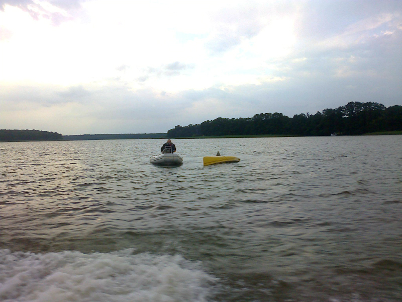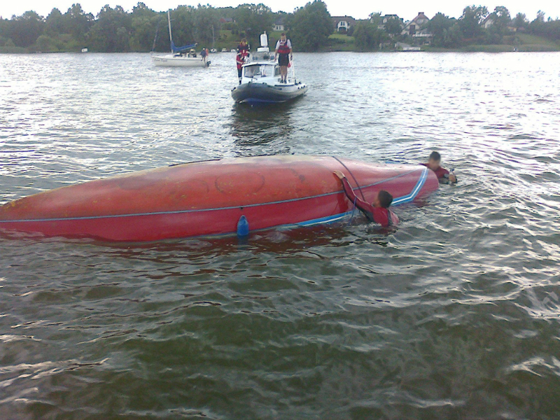 Kiedy ratownicy powrócili do Szałkowa wspólnie z policjantem i strażakiem zaczęli stawiać wywróconą jednostkę, która zaczęła już tonąć. Znaczne wymiary jednostki, a także zmieniające się warunki pogodowe znacznie utrudniały akcję, jednak wspólnymi siłami postawiono żaglówkę.