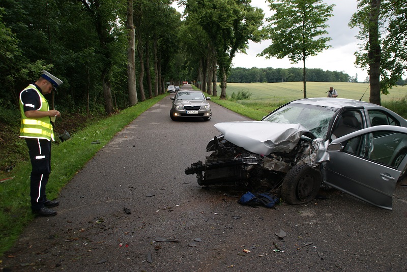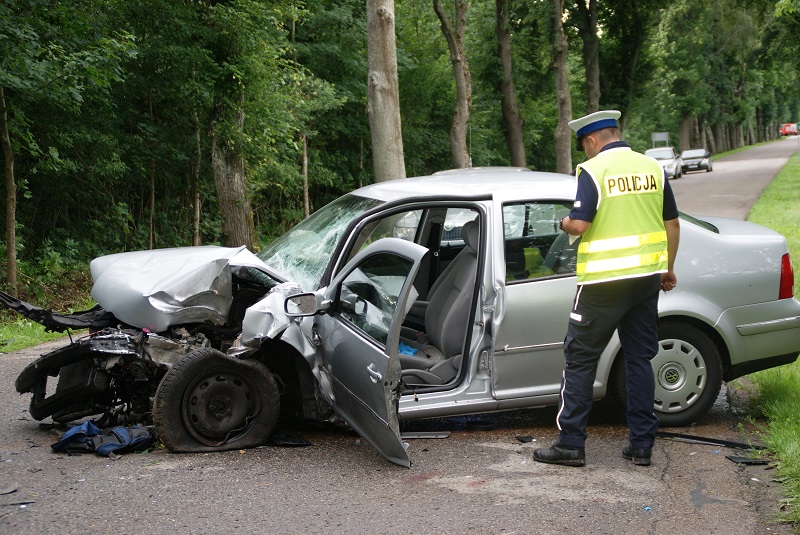 Zgłoszenie o wypadku drogowym w miejscowości Strubno w gminie Płoskinia policjanci otrzymali o godz. 12:30. Z wstępnych ustaleń wynika, że 55-letni kierowca VW Bora, mieszkaniec województwa śląskiego, na prostym odcinku drogi zjechał na przeciwny pas ruchu, po czym uderzył w przydrożne drzewo. Pomimo udzielonej pomocy medycznej kierujący zmarł.