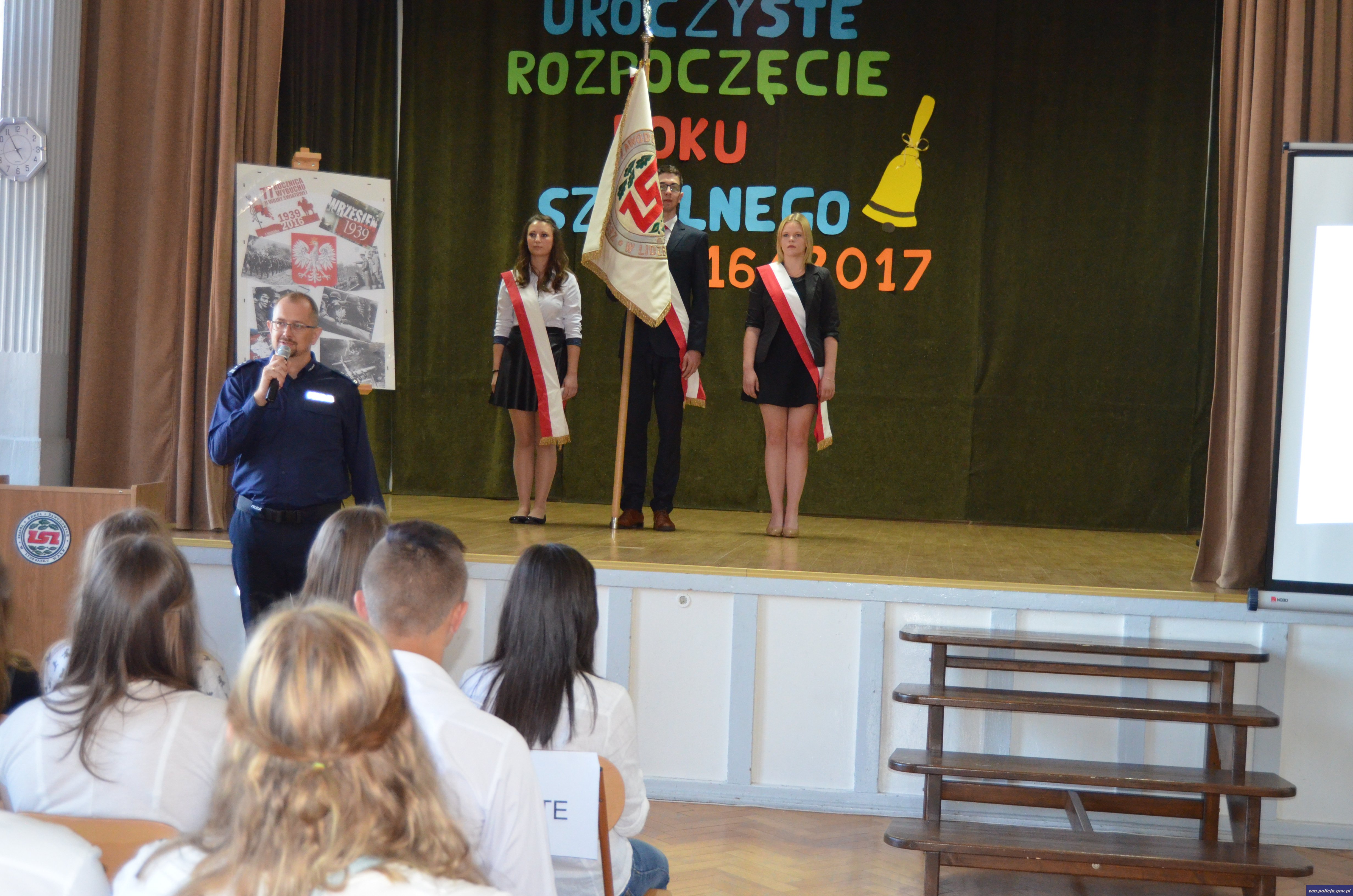 Podczas uroczystej inauguracji roku szkolnego która odbyła się w auli przy ulicy Orła Białego insp. Tomasz Kamiński powiedział do uczniów „do Was należy kontynuacja etosu służby. To trudna służba, odpowiedzialna, ale i dająca dużo satysfakcji z pomocy drugiemu człowiekowi”. Komendant Kamiński przypomniał też, że kilkoro policjantów lidzbarskiej jednostki jest absolwentami tej szkoły. Insp. Kamiński podkreślił, że uczniowie mają możliwość oswojenia się ze służbą mundurową co jest dużym ułatwieniem przy podjęciu decyzji przy wyborze zawodu.