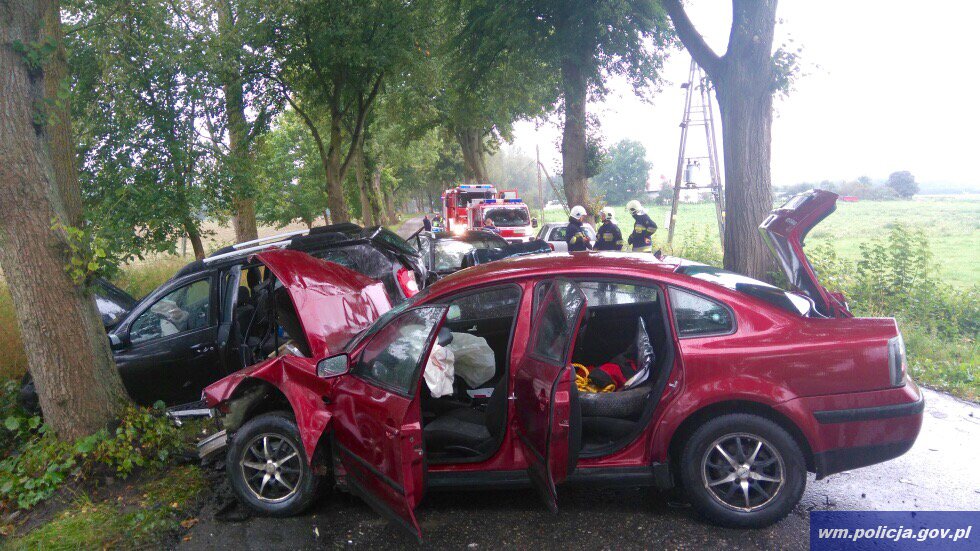 W wyniku tego zdarzenia cztery osoby zostały ranne. Kierowca passata, kierowca i pasażerka dacii oraz 5-miesieczne dziecko podróżujące toyotą zostali przetransportowani do szpitali w Elblągu i Olsztynie. Poszkodowane osoby doznały ogólnych potłuczeń ciała. Kierujący dacią doznał urazu złamania nogi.