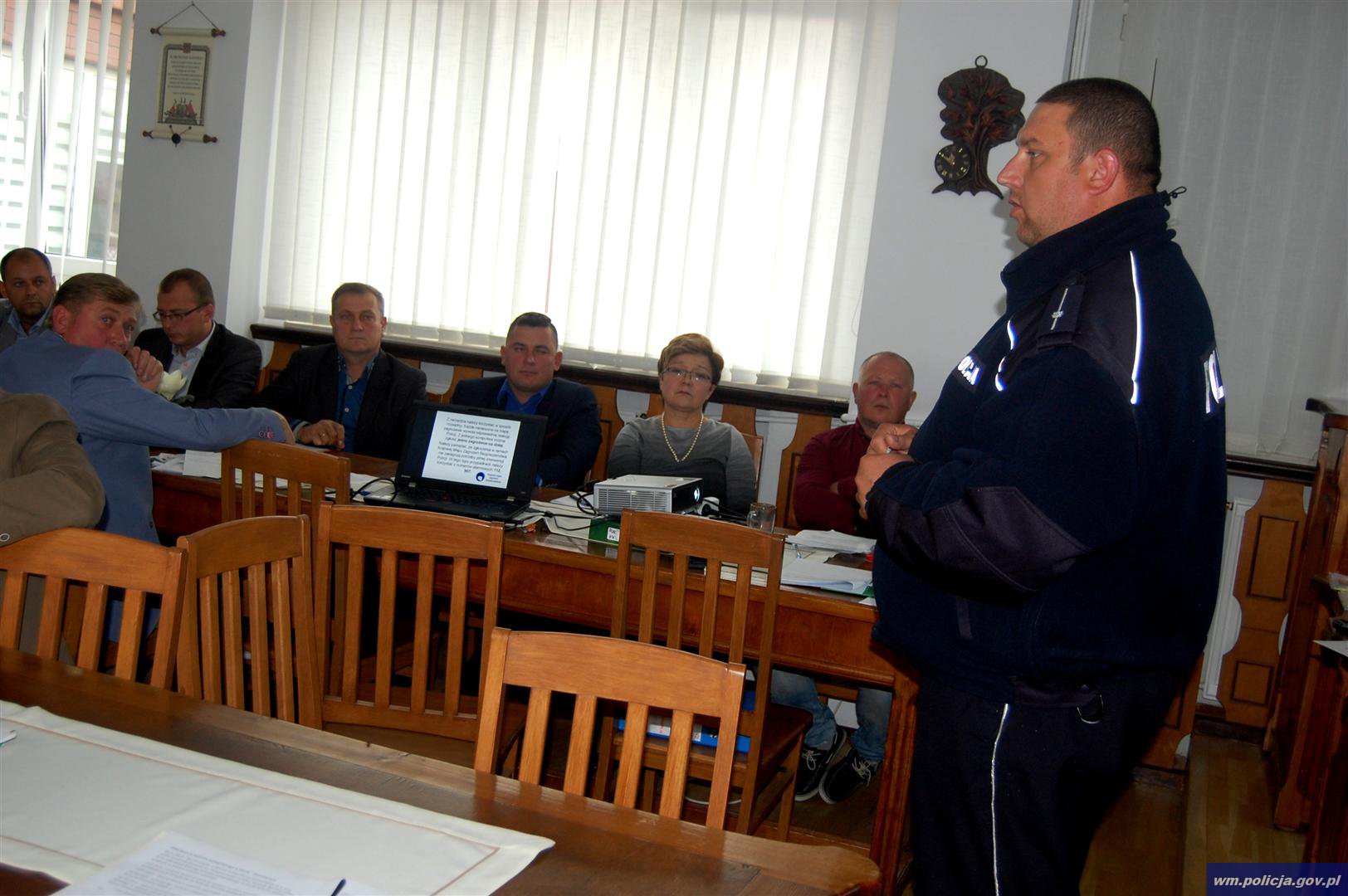 Zastępca Naczelnika Wydziału Prewencji, podkom. Piotr Korczakowski wspólnie z dzielnicowymi z powiatu szczycieńskiego spotkali w poszczególnych gminach z przedstawicielami samorządu i mieszkańcami, by przedstawić im zasady funkcjonownia Krajowej Mapy Zagrożeń Bezpieczeństwa.
