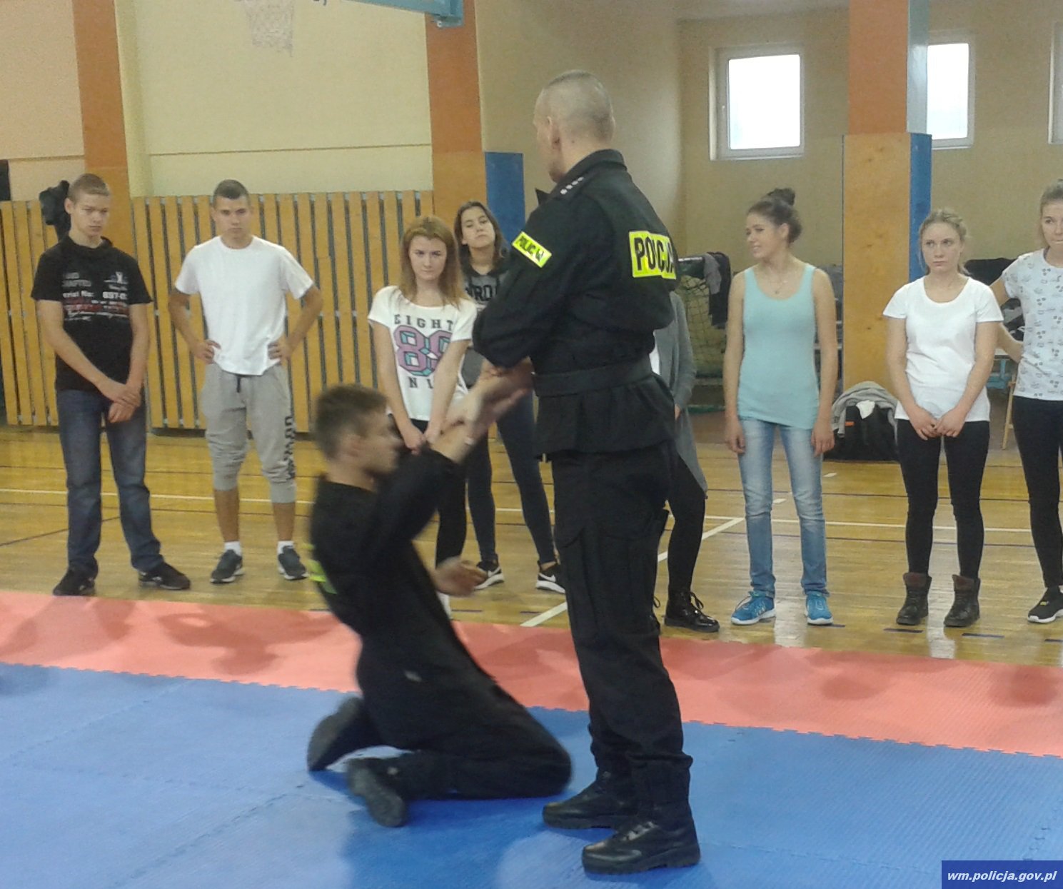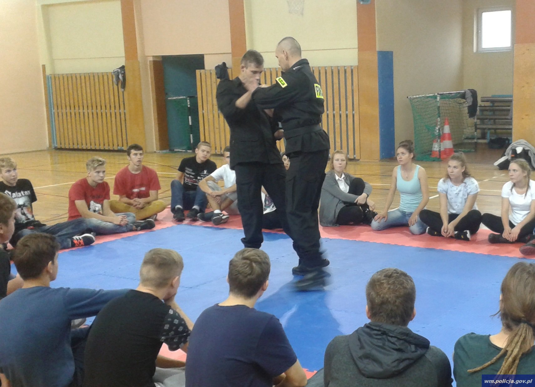 Wczoraj (12.10.2016) w Zespole Szkół im. Marii Curie Skłodowskiej w Kętrzynie odbyły się społeczne działania profilaktyczno-edukacyjne pod hasłem "Przemocy i agresji mówimy NIE ". Szkolenie przeprowadzone zostało przez policjantów z Komendy Powiatowej Policji w Kętrzynie i skierowane było do młodzieży szkolnej. Zajęcia zostały podzielone na dwie części. Pierwsza to szkolenie z samoobrony, natomiast druga to spotkanie ze specjalistą ds. nieletnich i dyskusja o odpowiedzialności karnej za popełnione czyny karalne i demoralizację.