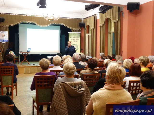 W olsztyńskim Ośrodku Kultury przy ul. Dąbrowszczaków odbyło się spotkanie policjantki z Wydziału Prewencji Komendy Miejskiej Policji w Olsztynie z seniorami z Jarockiej Akademii Trzeciego Wieku. Wykład odbył się w ramach działań edukacyjno- profilaktycznych "Bezpieczny Senior".