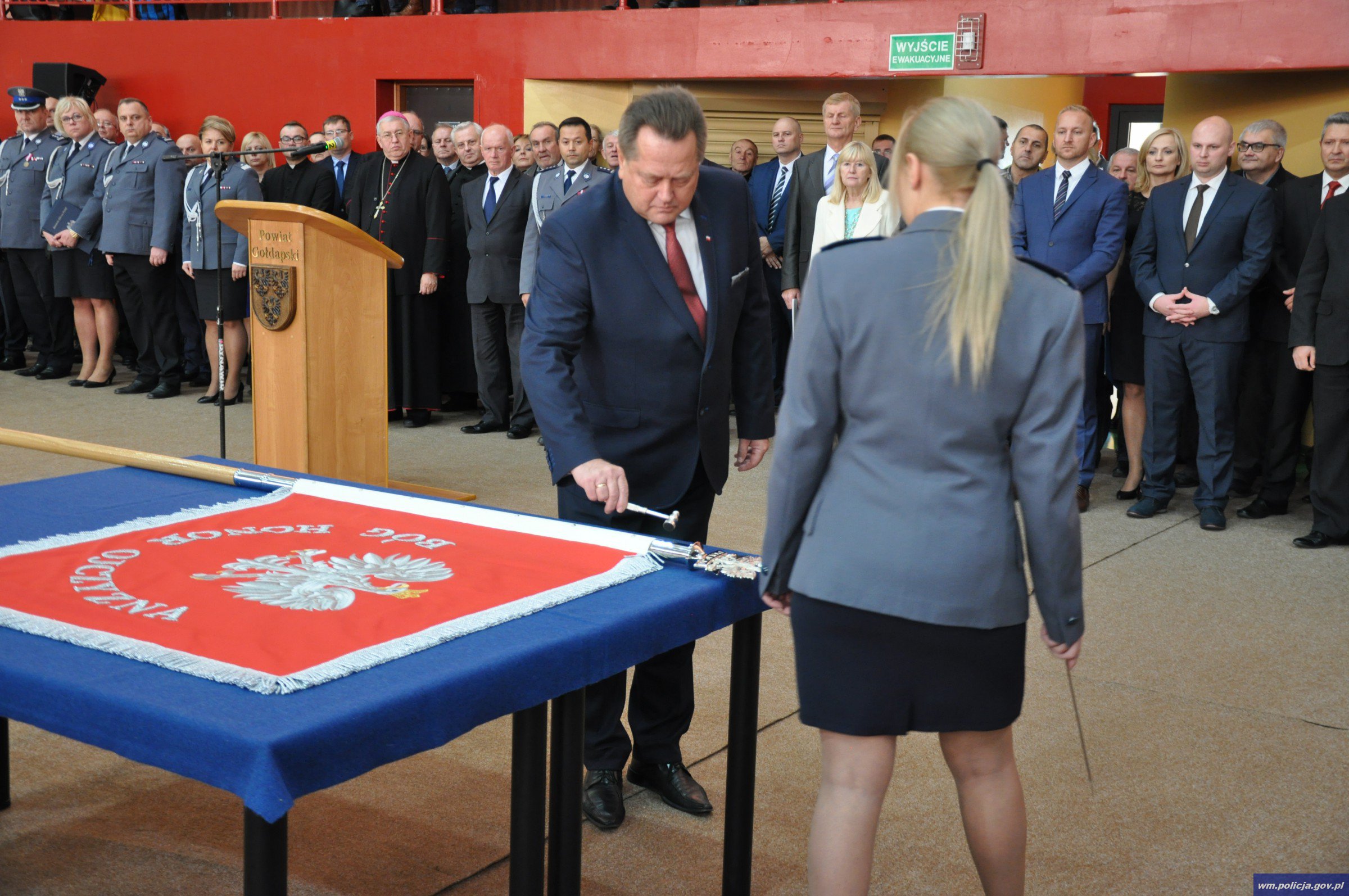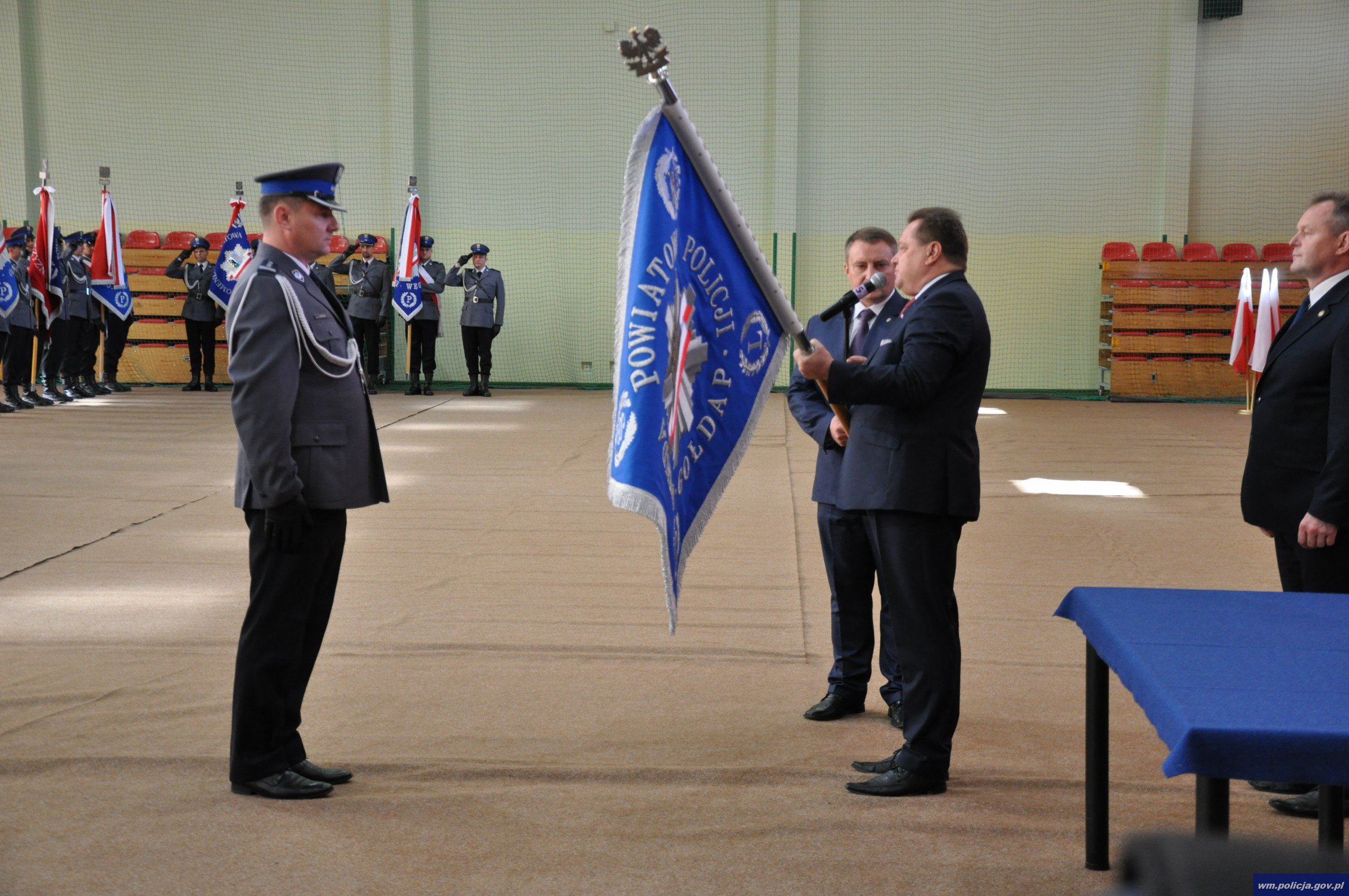 Podczas uroczystego otwarcia Komendy Powiatowej Policji w Gołdapi odbyło się również nadanie i wręczenie jednostce sztandaru.