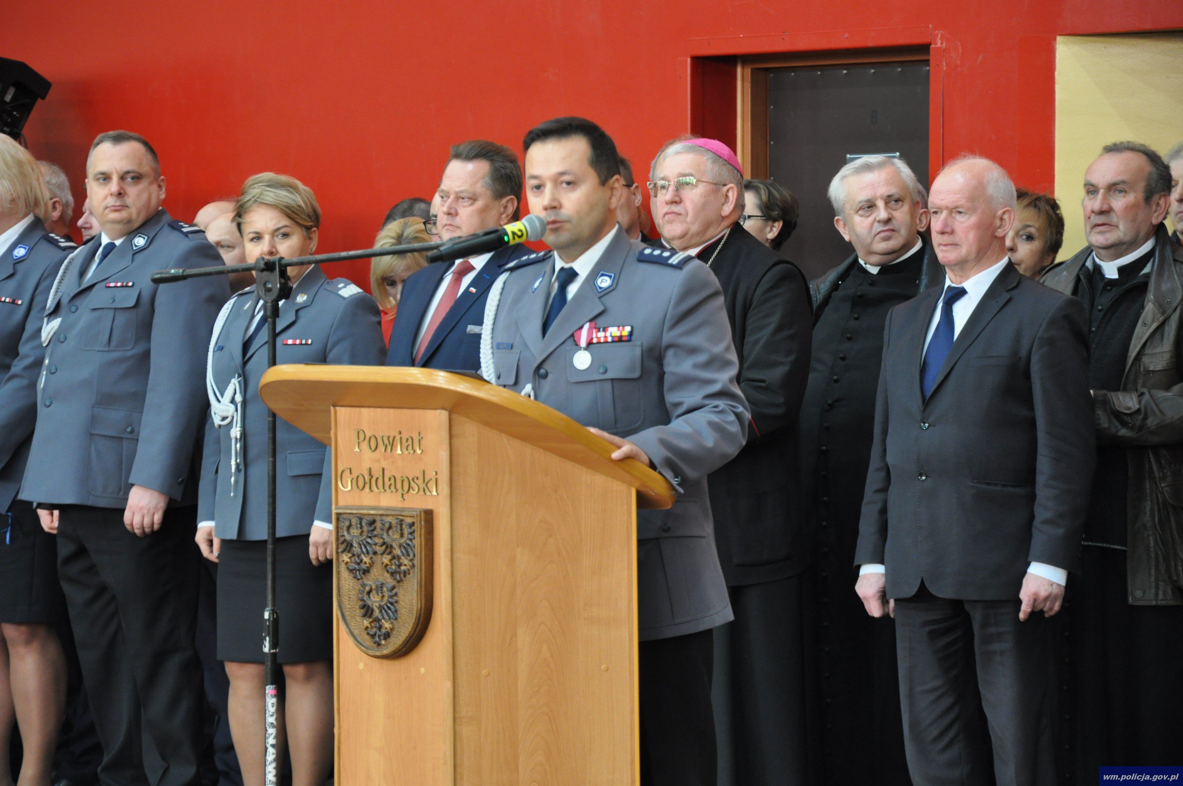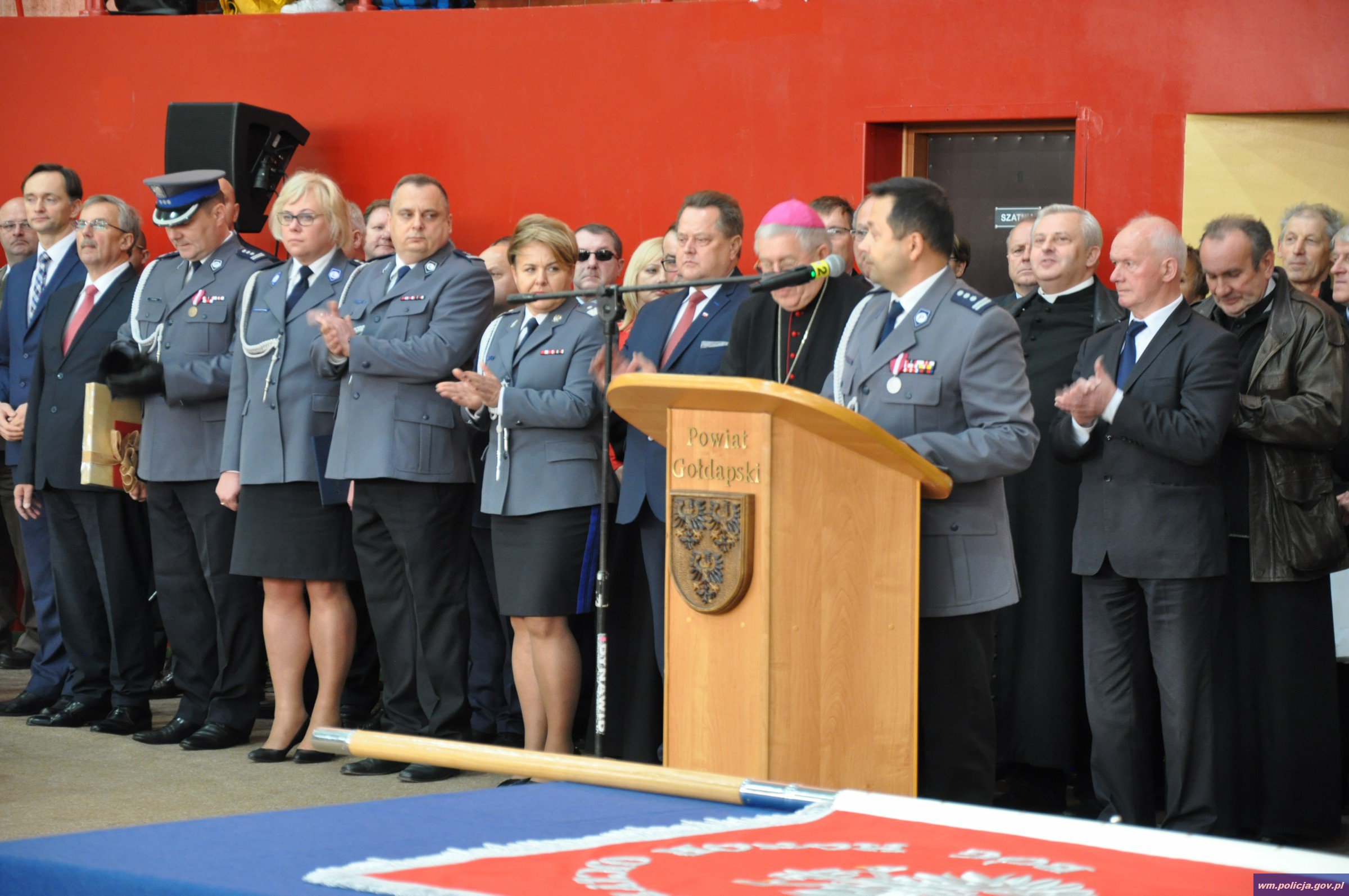 Podczas wczorajszych uroczystości Komendzie Powiatowej Policji w Gołdapi nadany został sztandar. Powagę tego wydarzenia podkreślał w swoim wystąpieniu Jarosław Zieliński, sekretarz stanu w MSWiA. Wczoraj nastąpiło również uroczyste otwarcie nowej siedziby Komendy Powiatowej Policji w Gołdapi. "Zależy nam, aby policjanci pełnili służbę w godnych warunkach. Takich jak w tej jednostce "- powiedział Jarosław Zieliński. W komendzie będzie pełniło służbę ponad 60 policjantów.