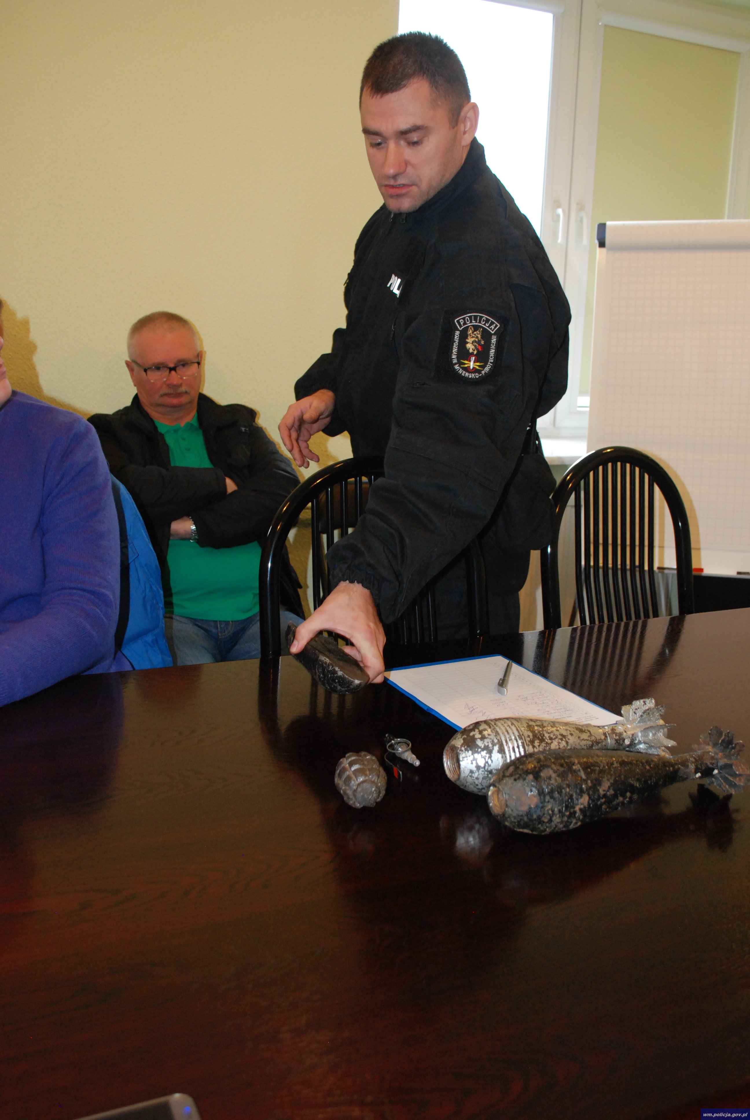 Kolejną część szkolenia poprowadził policjant z nieetatowej grupy rozpoznania minersko-pirotechnicznego działającej przy elbląskiej komendzie. Ta część dotyczyła niebezpiecznych lub podejrzanych pakunków, które mogą być pozostawione w środkach komunikacji i sposobu, w jaki powinni zareagować kierowcy i dyspozytorzy ruchu.