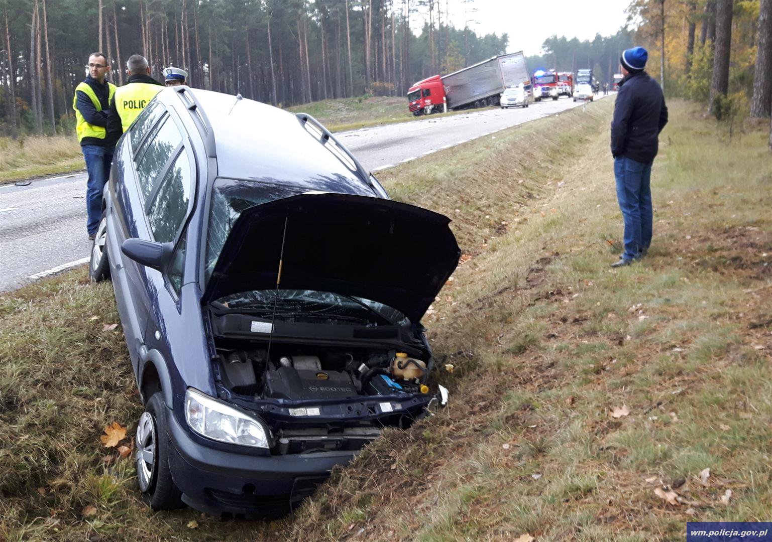 Na miejscu policjanci drogówki ustalili, że kierujący pojazdem marki Opel Zefira, 23-letni mieszkaniec Łomży, zjechał na przeciwległy pas ruchu. Zderzył się bokiem z jadącym z przeciwka pojazdem ciężarowym marki DAF. Na skutek uderzenia oba pojazdy zjechały do przydrożnego rowu. Kierowca osobówki tłumaczył funkcjonariuszom, że najprawdopodobniej przysnął za kierownicą.