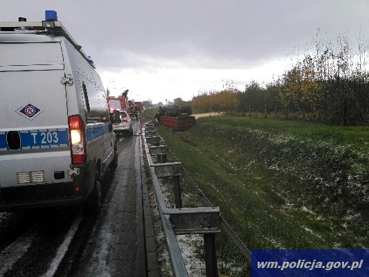 Od wczesnego poranka elbląscy policjanci odnotowali trzy kolizje, związane z niekorzystnymi warunkami na drogach. Spowodowały to opady deszczu ze śniegiem. Około godz. 10:00 na Węźle Wschód (droga S22) kierowca suzuki grand vitara stracił panowanie nad autem i wjechał do rowu. Z niewielkimi obrażeniami głowy trafił do szpitala na obserwację. Kolejne zdarzenie miało miejsce na obwodnicy Elbląga. Tam przed godz. 12:00 TIR z naczepą również wjechał do rowu i przewrócił się na bok. Na szczęście nikt nie odniósł obrażeń.