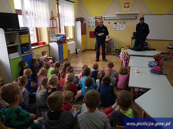 Policjanci zwrócili także najmłodszym uwagę na niebezpieczeństwa, które mogą czyhać na nie w kontaktach z obcymi osobami i zwierzętami dokładnie omawiając sposoby ich unikania.