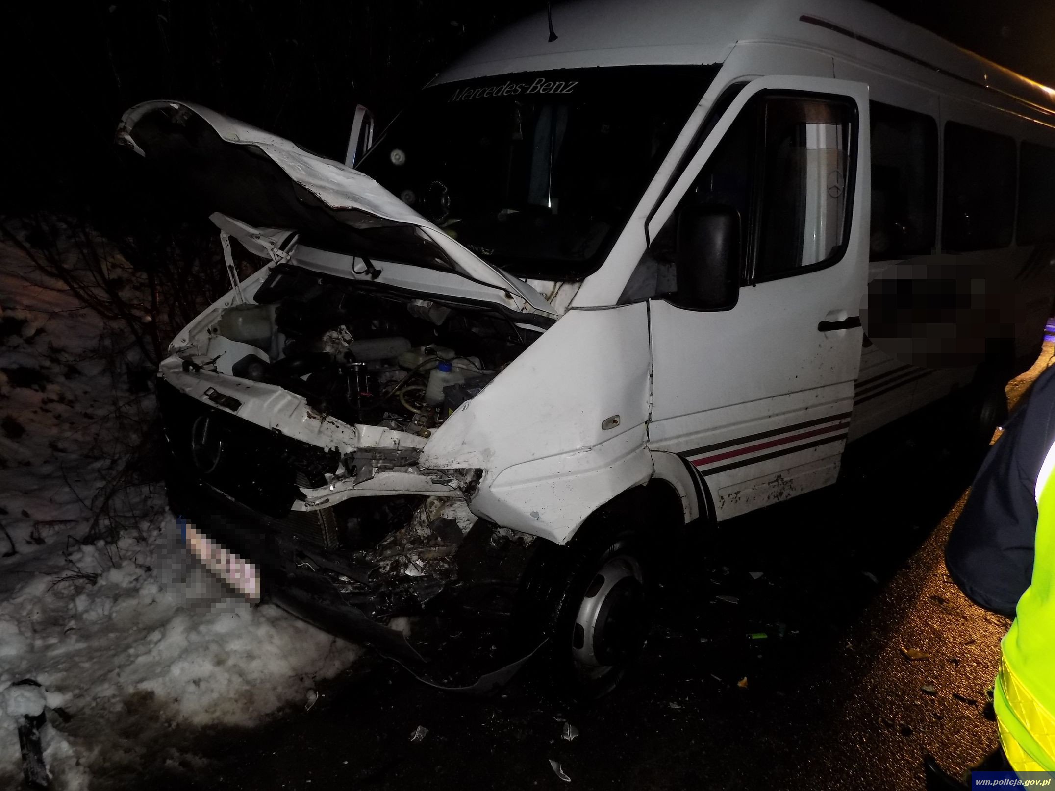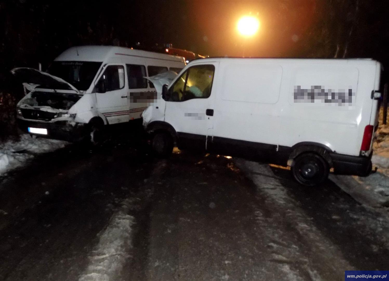 Wczoraj (29.11.2016) około godz. 16:20 oficer dyżurny nowomiejskiej komendy policji otrzymał zgłoszenie dotyczące zdarzenia drogowego. Policjanci, którzy pojechali na miejsce zastali tam dwa samochody - autobus marki Mercedes oraz samochód ciężarowy maki Renault. Ze wstępnych ustaleń policjantów pracujących na miejscu zdarzenia wynika, że kierujący renault na śliskiej, zaśnieżonej jezdni stracił panowanie nad pojazdem, zjechał na przeciwny pas jezdni doprowadzając do zderzenia z prawidłowo jadącym mercedesem.