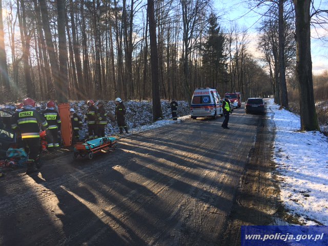 Wczoraj (29.11.2016) na trasie Wola - Taplikajmy w gminie Bartoszyce doszło do wypadku drogowego, w wyniku którego pasażer VW ze złamanym kręgosłupem trafił do szpitala. Kierująca samochodem kobieta na prostym odcinku drogi najprawdopodobniej nie dostosowała prędkości do warunków drogowych, co spowodowało, że wpadła w poślizg i bokiem samochodu uderzyła w przydrożne drzewo. 40-latka była trzeźwa. Policjanci zatrzymali prawo jazdy kierującej, a pojazd zabezpieczyli. Zapewne nie bez znaczenia był fakt, że 40-latka uprawnienia posiadała od kwietnia tego roku, co się wiąże z niewielkim doświadczeniem jazdy na zimowej nawierzchni. Obrażenia w tym zdarzeniu odniósł pasażer auta i karetką został odwieziony do szpitala.