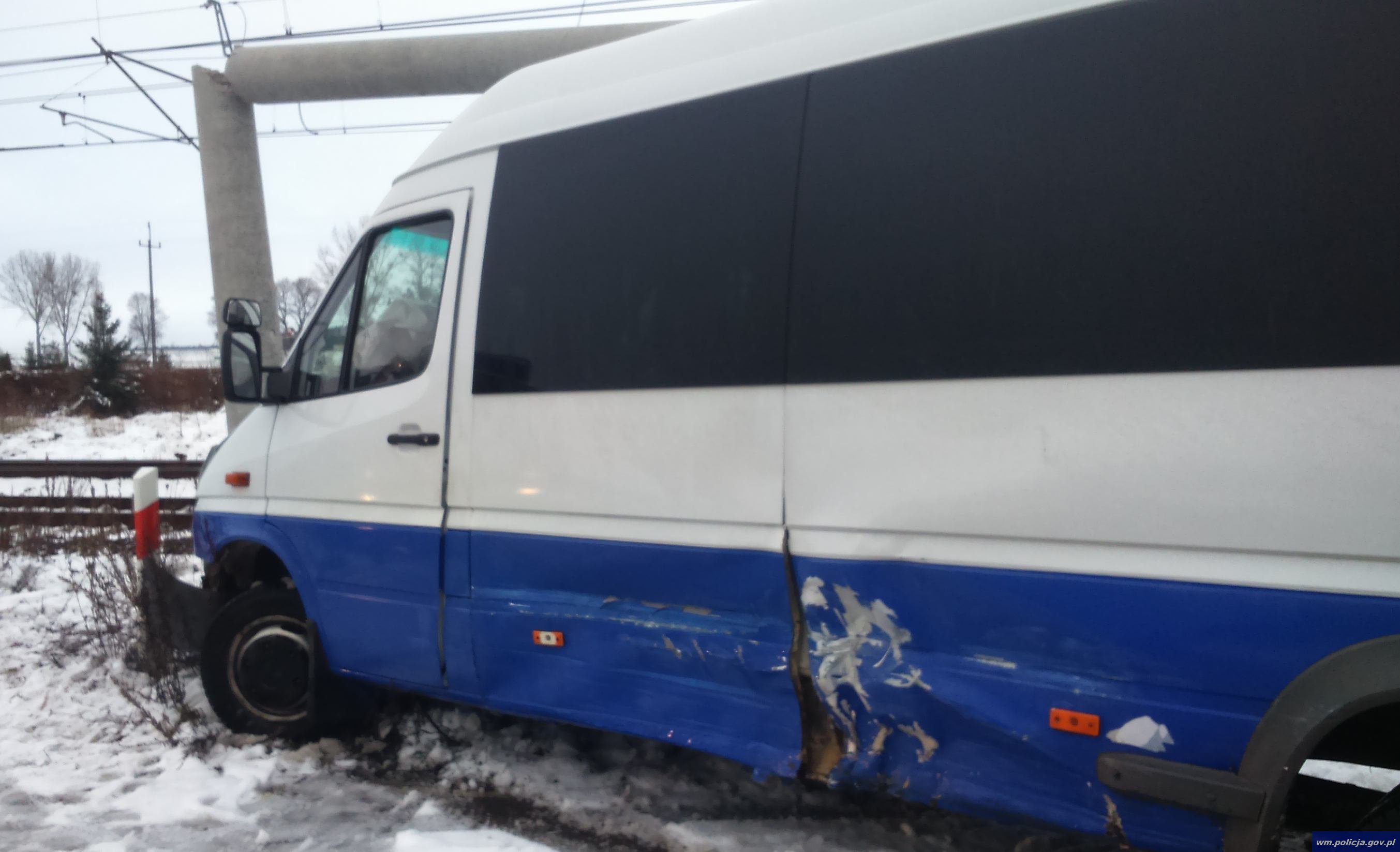 Wczoraj (29.11.2016) około godz. 14:00 na trasie Gralewo Stacja - Gralewo Wieś doszło do niebezpiecznego zdarzenia drogowego. Ze wstępnych ustaleń olicjantów wynika, że kierujący osobowym volkswagenem na łuku drogi nie dostosował prędkości do warunków panujących na drodze, w wyniku czego uderzył w bok jadącego z naprzeciwka busa. W wyniku tego uderzenia bus wypadł z drogi i uderzył w słup energetyczny, który następnie spadł na dach tego auta.