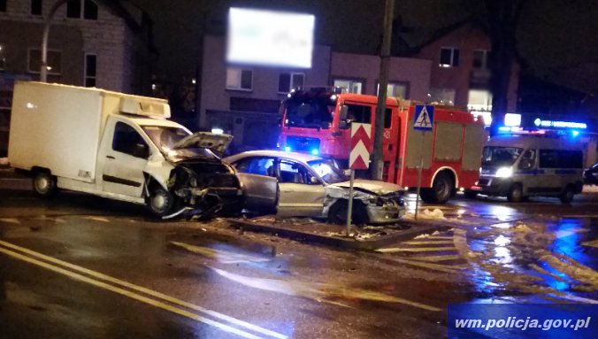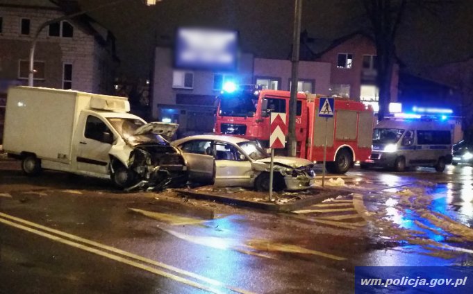 Do innego zdarzenia funkcjonariusze zostali wezwani po tym, jak 32–letni kierujący mazdą skręcając w lewo na skrzyżowaniu z sygnalizacją świetlą, nie ustąpił pierwszeństwa przejazdu kierującemu citroenem jadącym na wprost. W wyniku czego doszło do bocznego zderzenia między pojazdami. Na miejsce przybyła karetka pogotowia, która pasażerkę mazdy z obrażeniami głowy przetransportowała do szpitala w Iławie. Kierujący pojazdami byli trzeźwi. 32-latek miał prawo jazdy dopiero pół roku.