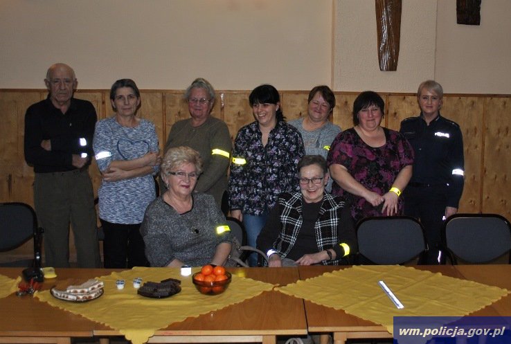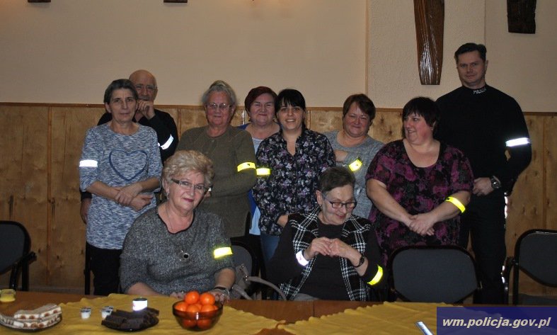 Bezpieczeństwo na drodze było głównym tematem spotkania policjantów z Komendy Powiatowej Policji w Bartoszycach z członkami Dyskusyjnego Klubu Książki w Rodnowie, podopiecznymi Środowiskowego Domu Samopomocy w Kamińsku oraz seniorami z Mint i Sokolicy. Funkcjonariusze rozmawiali z osobami niepełnosprawnymi oraz starszymi o tym, w jaki sposób bezpiecznie poruszać się po drodze. Policjanci przypomnieli między innymi o zasadach przechodzenia przez ulicę, wychodzenia zza przeszkód ograniczających widoczność, poruszania się poza obszarem zabudowanym. Dużą uwagę zwrócili na obowiązek noszenia elementów odblaskowych. Przypomnieli słuchaczom, że pieszy, który porusza się po zmierzchu poza obszarem zabudowanym musi mieć odblask umieszczony w sposób widoczny dla kierujących. Za brak takiego elementu grozi mandat karny w wysokości nawet 100 złotych. Chcąc bardziej dotrzeć do seniorów zaprezentowana została prezentacja obrazująca pieszego poruszającego się nocą bez odblasków oraz z elementami odblaskowymi. Po obejrzeniu przygotowanego materiału nie trzeba było przekonywać uczestników, jak ważną kwestią są elementy odblaskowe i że warto je nosić. Bo jest to jeden z najprostszych, a zarazem najbardziej skuteczny sposób na dbanie o własne życie i zdrowie. Na zakończenie spotkania uczestnicy otrzymali opaski odblaskowe, aby zawsze bezpiecznie docierali do celu.