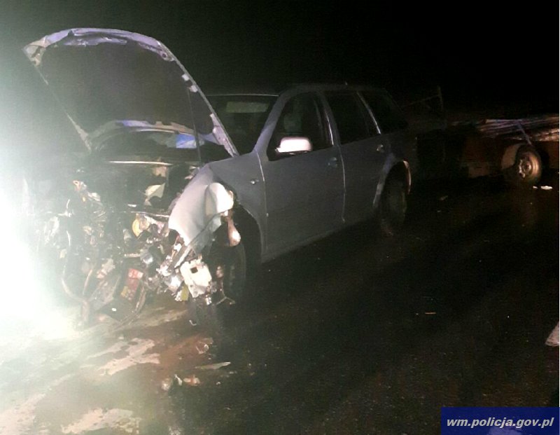 Do kolejnego zdarzenia doszło pomiędzy Złotowem a Napromkiem. Tam kierujący VW z podłączoną przyczepką najprawdopodobniej nie dostosował prędkości do warunków panujących na drodze, w wyniku czego zjechał na przeciwległy pas ruchu i doprowadził do zderzenia czołowego z kierującym audi.
