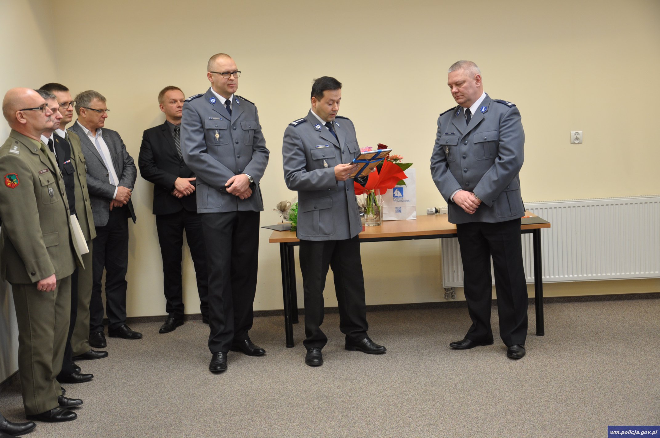 Niezwykle uroczysta atmosfera towarzyszyła pożegnaniu podinsp. Dariusza Gida. Zdanie obowiązków służbowych I Zastępcy Komendanta Powiatowego Policji w Węgorzewie nastąpiło w obecności insp. Tomasza Klimka Komendanta Wojewódzkiego Policji w Olsztynie, władz samorządowych, przedstawicieli służb mundurowych, policjantek i policjantów oraz zaproszonych gości.