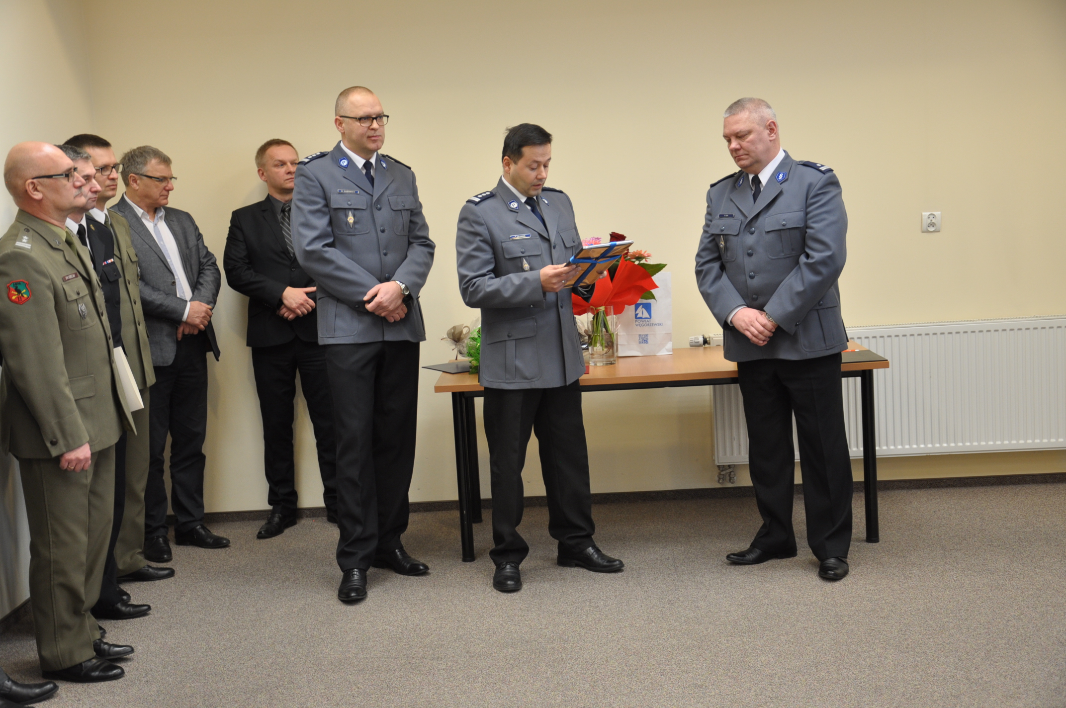 W swoim wystąpieniu podinsp. Dariusz Gida podziękował za 4-letnią współpracę i wspieranie policyjnego trudu staroście, burmistrzowi i wójtom gmin całego powiatu, a także komendantom służb mundurowych oraz przedstawicielom zaprzyjaźnionych instytucji. Podziękował także za zaangażowanie i wspólną służbę wszystkim policjantkom i policjantom oraz pracownikom cywilnym.