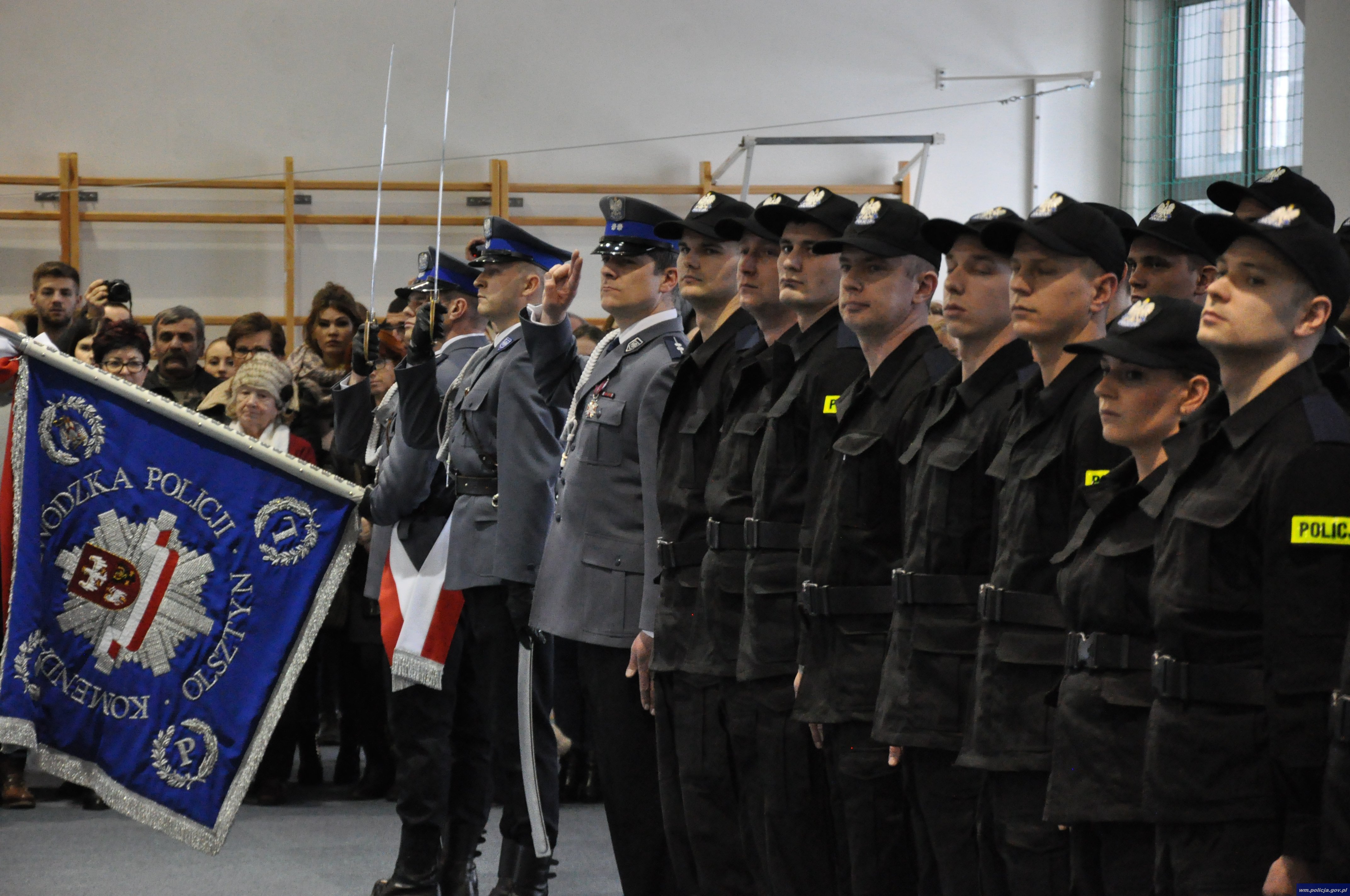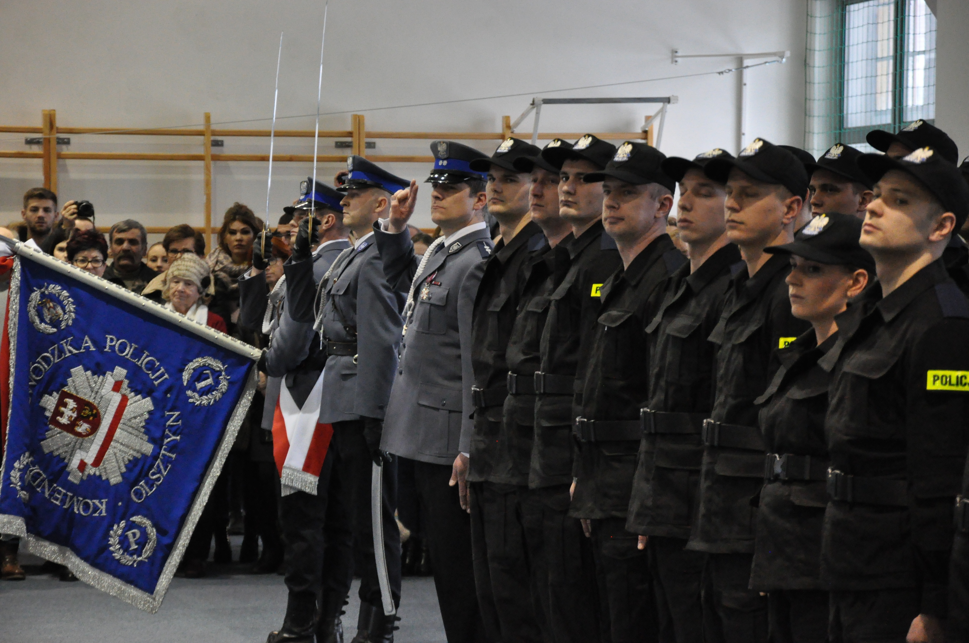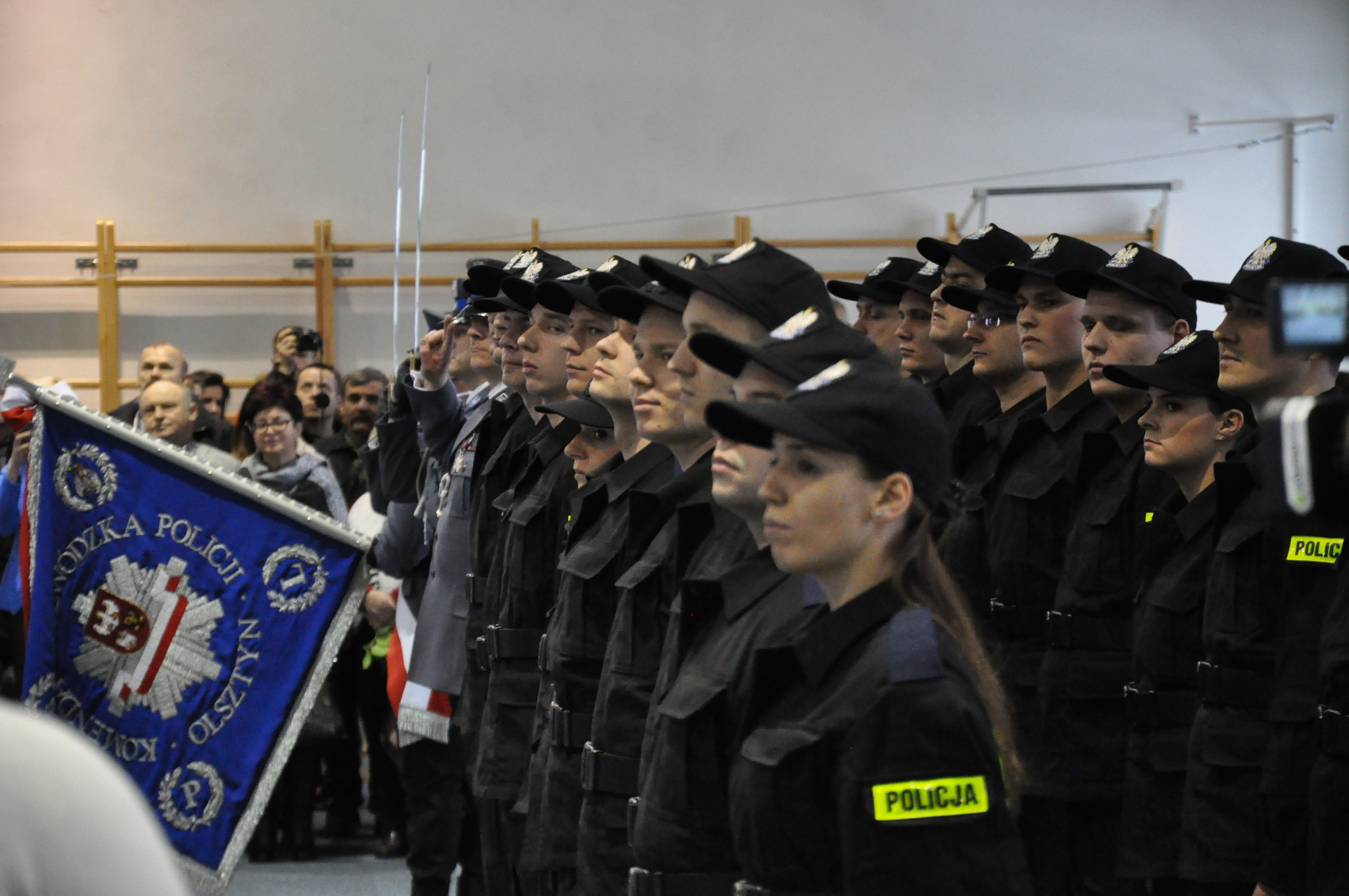 W sali gimnastycznej przy ulicy Pstrowskiego 3 w Olsztynie odbyło się uroczyste ślubowanie 50 nowo przyjętych policjantów. W tym gronie znalazło się 5 kobiet oraz 45 mężczyzn. Policjanci w obecności mł. insp. Arkadiusza Sylwestrzaka, Zastępcy Komendanta Wojewódzkiego Policji w Olsztynie, swoich rodzin, bliskich, znajomych wypowiedzieli słowa roty ślubowania.