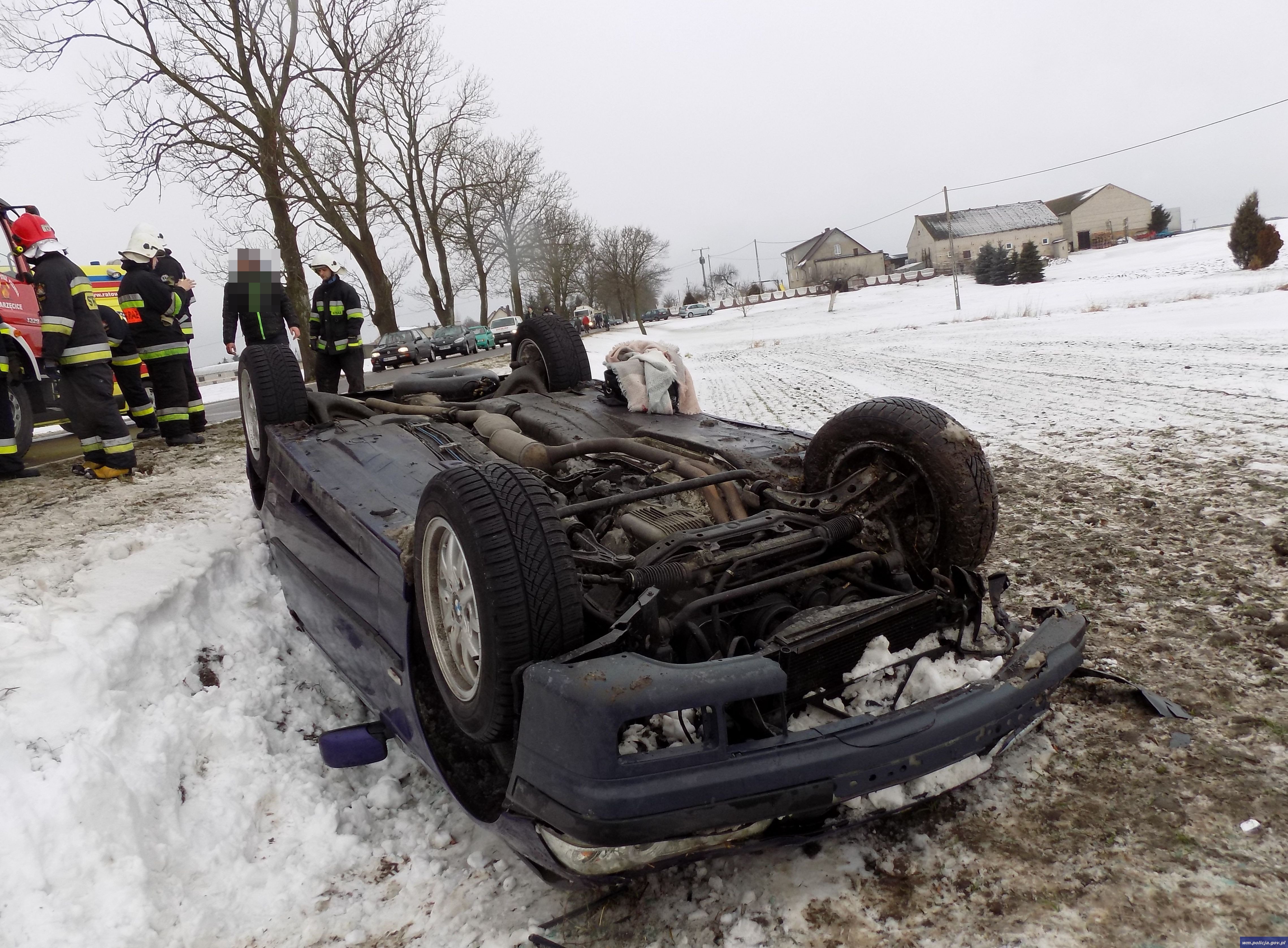 Do zdarzenia doszło wczoraj około godziny 11.30 w miejscowości Mikołajki. Młody kierowca BMW jadąc od strony Marzęcic w kierunku Wawrowic nie dostosował prędkości do warunków drogowych w wyniku czego zjechał na prawe pobocze, a następnie doprowadził do wywrócenia się pojazdu.