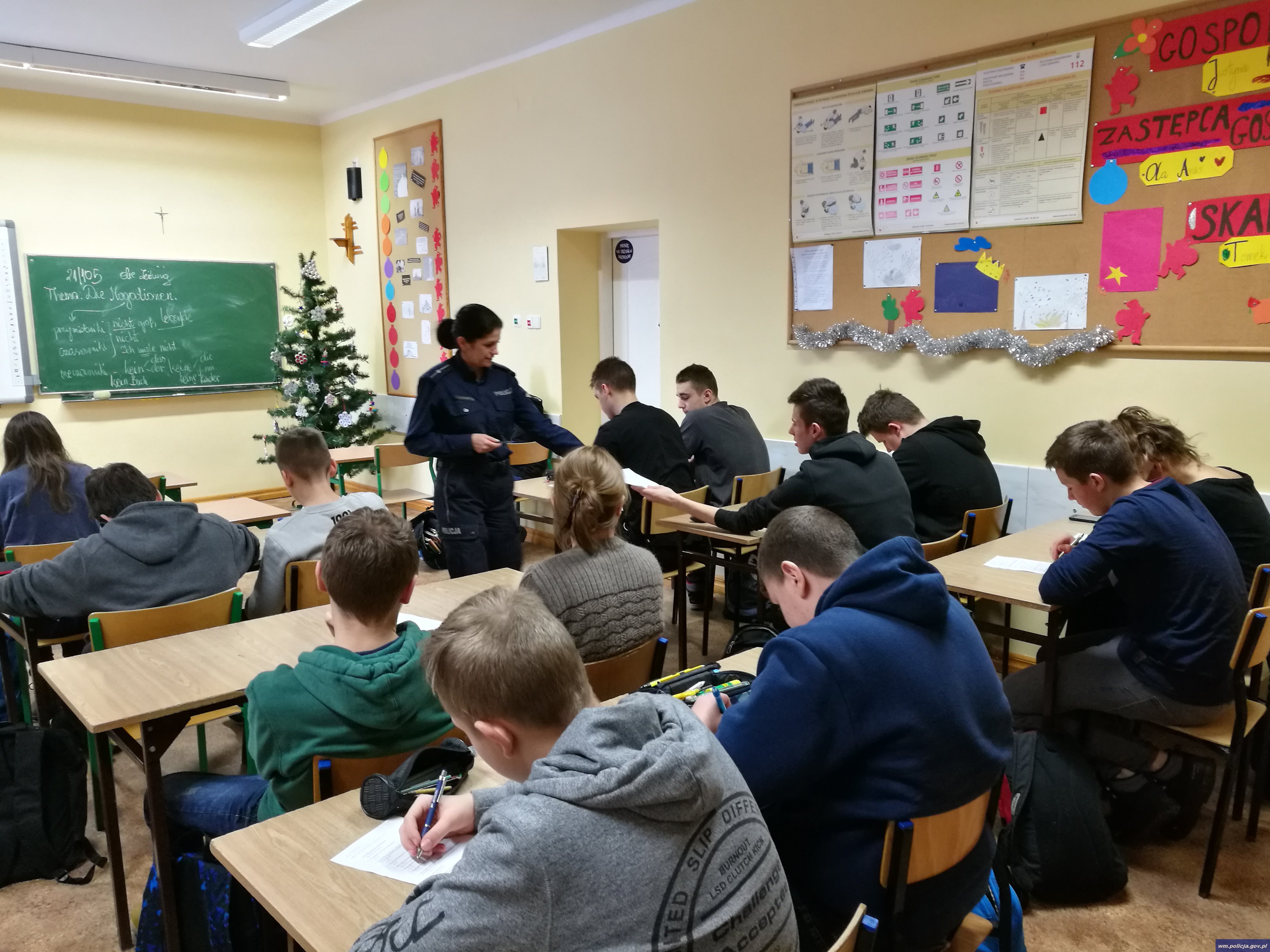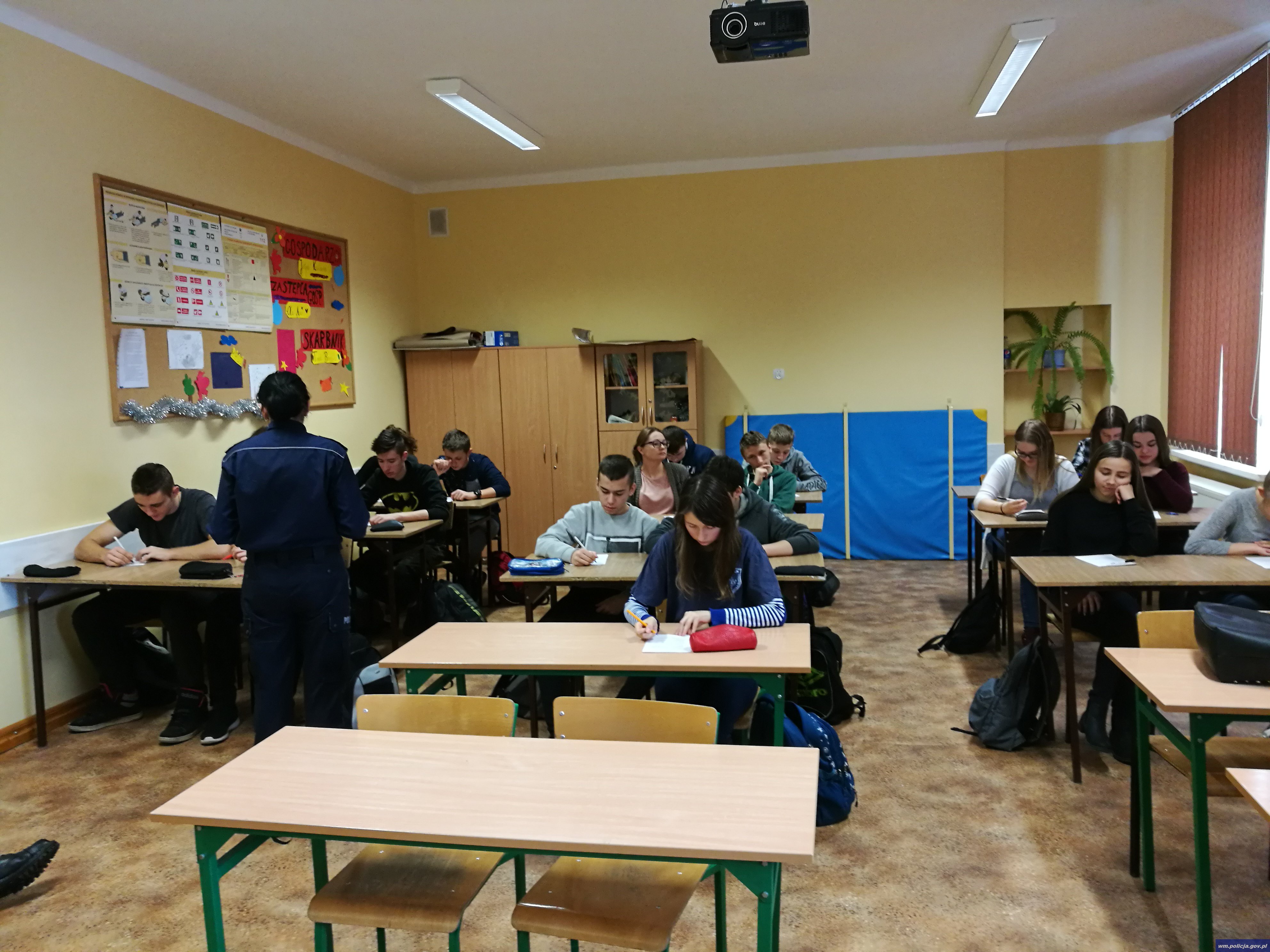W związku z przystąpieniem Gimnazjum nr 1 w Działdowie do Rządowego Projektu „Razem Bezpieczniej” funkcjonariusze z działdowskiej komendy wczoraj (19.01.2017) przeprowadzili także prelekcję na temat „Czuję się bezpiecznie, bo wiem, że wszelka agresja, dewastacja i niszczenie mienia jest karalne. Wszyscy jesteśmy odpowiedzialni za bezpieczeństwo, ład i porządek nie tylko w miejscu zamieszkania”.
