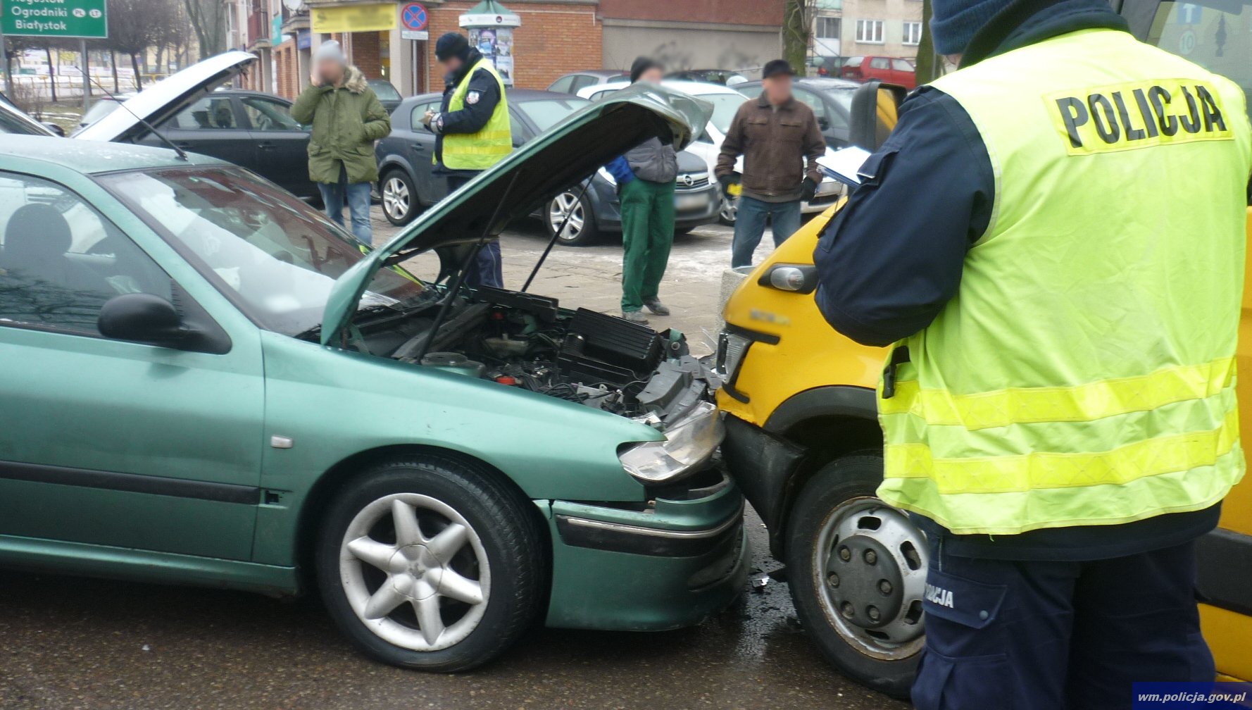 Do groźnie wyglądającego zdarzenia doszło dziś (24.01.2017) przed godz. 9:00 na ul. Wojska Polskiego w Ełku. Z ustaleń policjantów pracujących na miejscu zdarzenia wynika, że 31-letnia kierująca peugeotem nie ustąpiła pierwszeństwa przejazdu i zderzyła się z jadącym prawidłowo range roverem. W wyniku zderzenia pojazdy zjechały na przeciwległy pas ruchu. Peugeot uderzył także w zaparkowany przy jezdni samochód dostawczy marki Iveco, uszkadzając go.