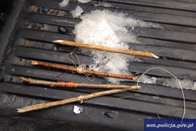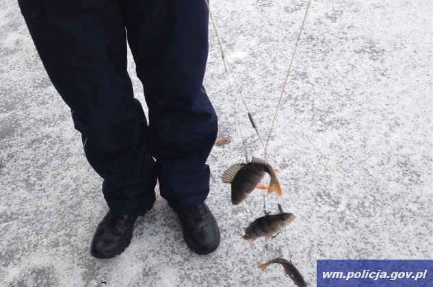 Wczoraj (01.02.2017) na jeziorze Jełguń w giminie Purda policyjni wodniacy zatrzymali na gorącym uczynku 63-latka, który w nielegalny sposób łowił ryby. Wykorzystywał do tego celu pęczki hakowe - tzw."samoróbki".