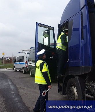 Ostródzcy policjanci wspólnie z funkcjonariuszami Inspekcji Transportu Drogowego z Olsztyna kontrolowali ciężarówki przewożące materiały niebezpieczne. Oprócz stanu technicznego pojazdów funkcjonariusze sprawdzali, czy kierowcy przestrzegają przepisy regulujące czas pracy oraz przewóz niebezpiecznych ładunków.