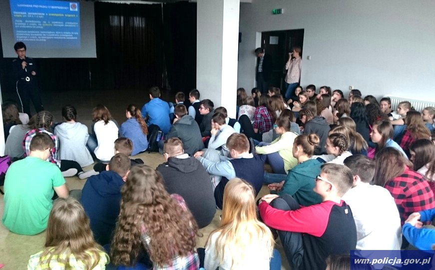 Następnego dnia policjanci przeprowadzili szereg spotkań profilaktycznych z uczniami lokalnych placówek oświatowych. W Liceum Ogólnokształcącym im. Gen. Mariusza Zaruskiego w Węgorzewie promowali istniejącą tam klasę policyjną. Na terenie szkoły spotkali się m.in. z młodzieżą gimnazjalną z Węgorzewa i pobliskich miejscowości.
