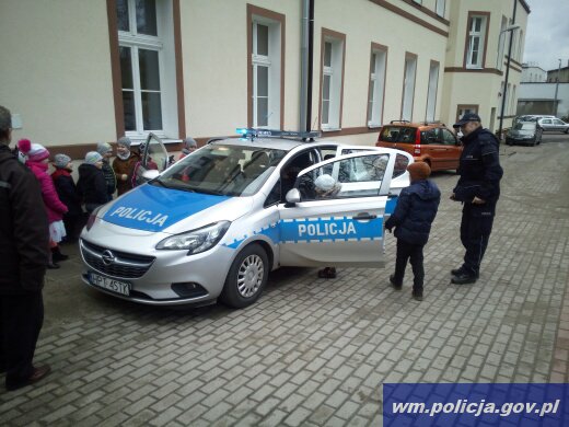 Dzielnicowy bliżej nas”, czyli także bliżej najmłodszych. Wykorzystując Pierwszy Dzień Wiosny Dzielnicowi z Komendy Powiatowej Policji w Ostródzie odwiedzili Szkołę Podstawową nr 2 w Ostródzie. Spotkali się z przedszkolakami i uczniami klasy zero, by rozmawiać na temat bezpieczeństwa w ruchu drogowym. Funkcjonariusze omówili najczęstsze błędy popełniane przez kierujących i pieszych, które są przyczyną zdarzeń drogowych. Policjant zwrócił uwagę jak ważne jest używanie elementów odblaskowych podczas poruszania się po drogach po zmierzchu. Tłumaczyli, że to nie tylko obowiązek, ale również potrzeba zagwarantowania sobie bezpieczeństwa poprzez bycie widzialnym dla kierujących pojazdami. Dzielnicowi omówili również jak powinny zachowywać się dzieci podczas nieobecności rodziców w domu. Jakie miejsce wybrać do zabawy, aby było bezpieczne, co robić w przypadku ataku agresywnego psa. Szczególnie duże zainteresowanie wzbudził policyjny radiowóz oraz sprzęt wykorzystywany w codziennej służbie. Dzieci bardzo chętnie i aktywnie uczestniczyły w spotkaniu.