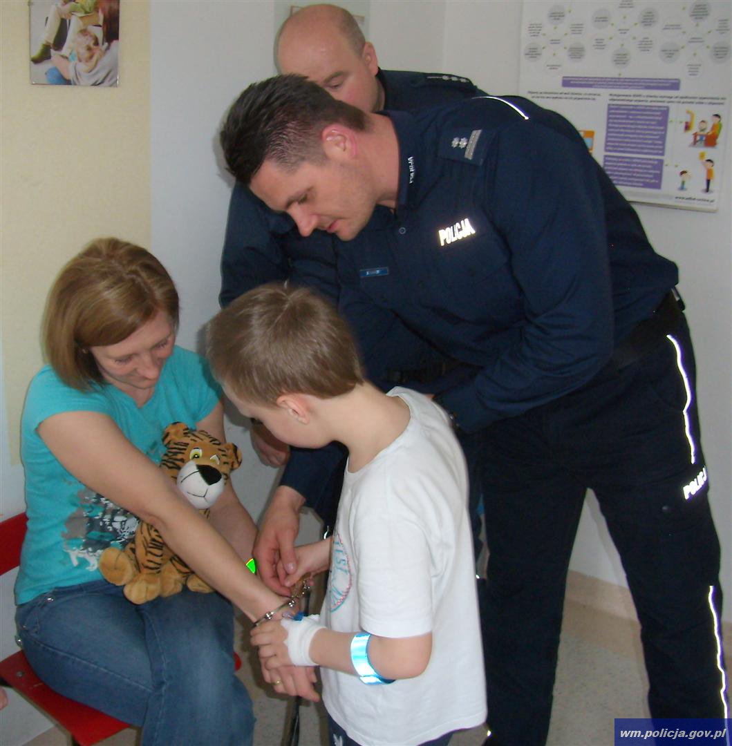 Policjanci okazali się także bardzo pomocni przy pobraniu krwi jednemu z małych pacjentów. Odwracając uwagę 4-letniego chłopca swoją obecnością okazało się, że zabieg ten wcale nie jest taki straszny, jakby się wydawało. Natomiast policyjna czapka na głowie małego pacjenta najwyraźniej dodawała mu otuchy i odwagi.