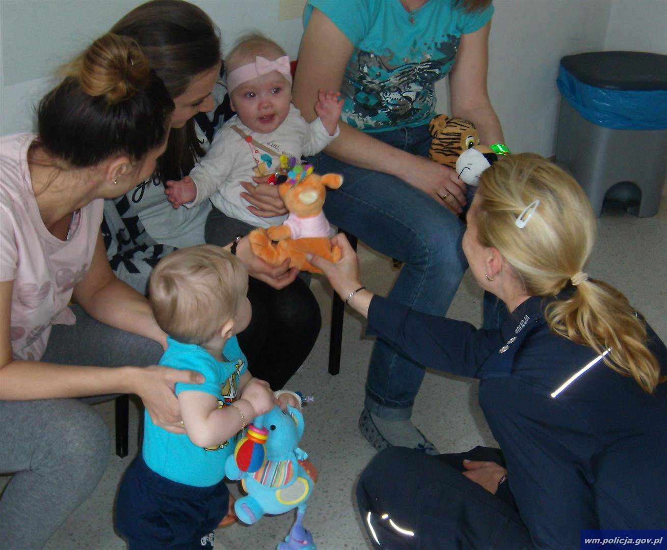Dzieci nie kryły swojego zaskoczenia, kiedy zauważyły policjantów na oddziale. Buzie uśmiechnęły się im jeszcze bardziej, kiedy zobaczyły ile zabawek przywieźli im funkcjonariusze. Dla każdego znalazło się coś miłego. Dzieci starsze dostały od dzielnicowego również opaski odblaskowe, aby po wyjściu ze szpitala były bezpieczne na drodze. Wszystkie maluchy otrzymały także słodkości.