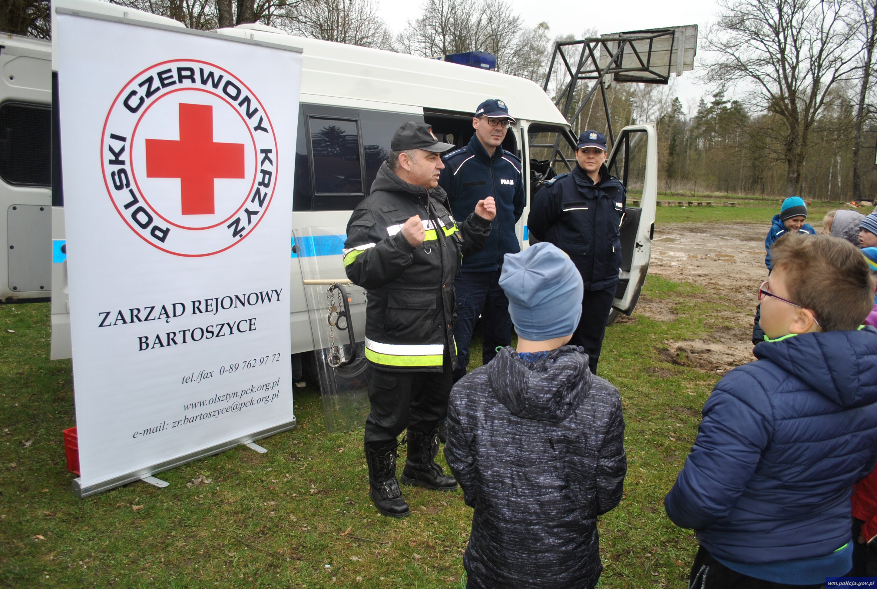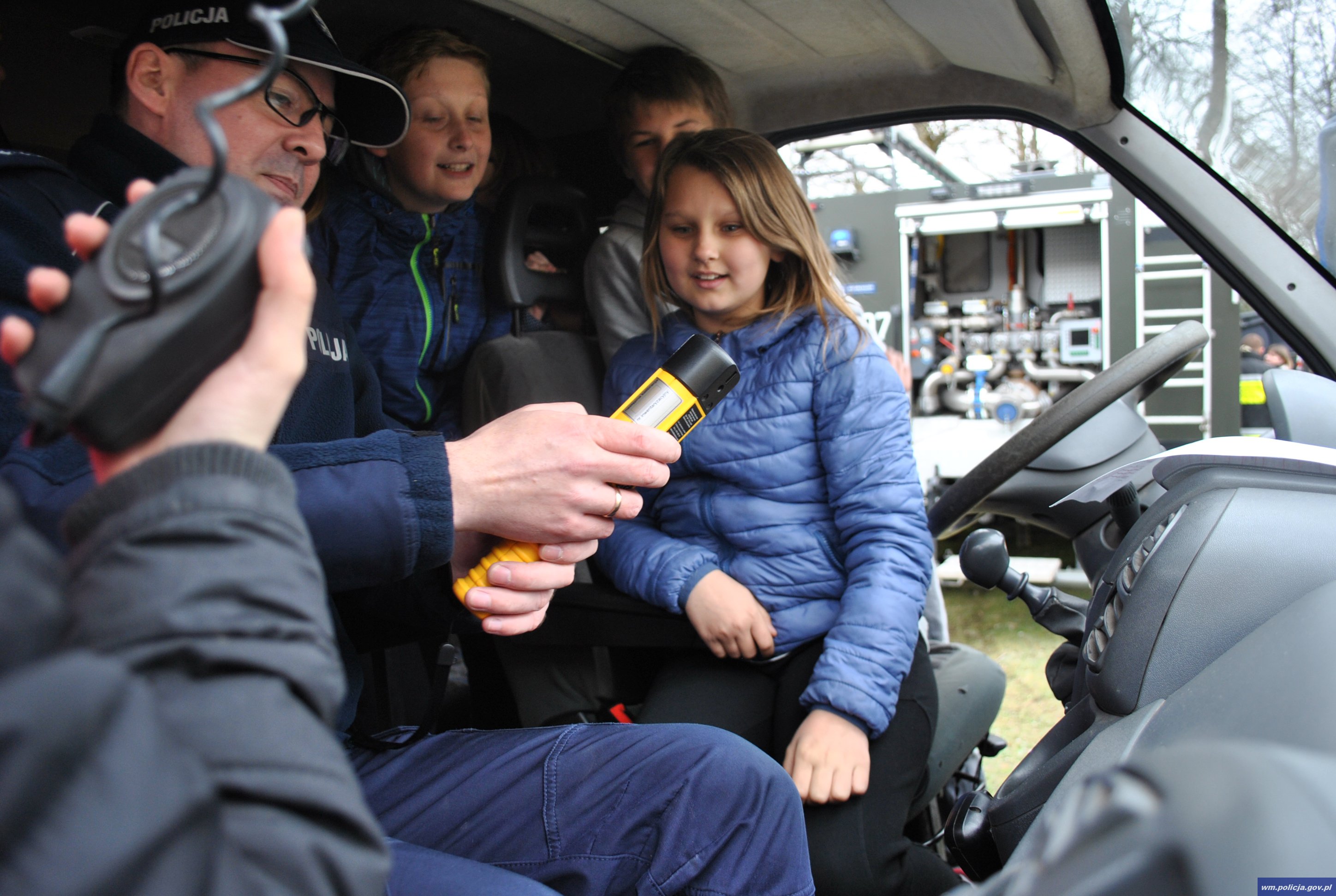 Dzieci przyjęły mundurowych z ogromnym entuzjazmem i wyczekiwały momentu, kiedy będą mogły wsiąść do radiowozu czy wozu strażackiego. Policjant rozmawiał z dziećmi na temat bezpieczeństwa podczas nadchodzących Świat Wielkanocnych, o bezpieczeństwie w ruchu drogowym, a także o codziennej pracy policjanta – dzielnicowego. Dzieci z uwagą wysłuchały co zarówno policjant jak i inni funkcjonariusze mieli do przekazania i ruszyły do oglądania samochodów służbowych. Wsiadały do aut, włączały „koguty”, przyglądały się jak działają urządzenia specjalistyczne zamontowane w pojazdach, które na co dzień wykorzystywane są do pełnienia służby. Widać było, że sprawiało im to ogromną radość. Na koniec spotkania każde dziecko zostało obdarowanie słodkościami zebranymi w czasie zbiórek krwi.