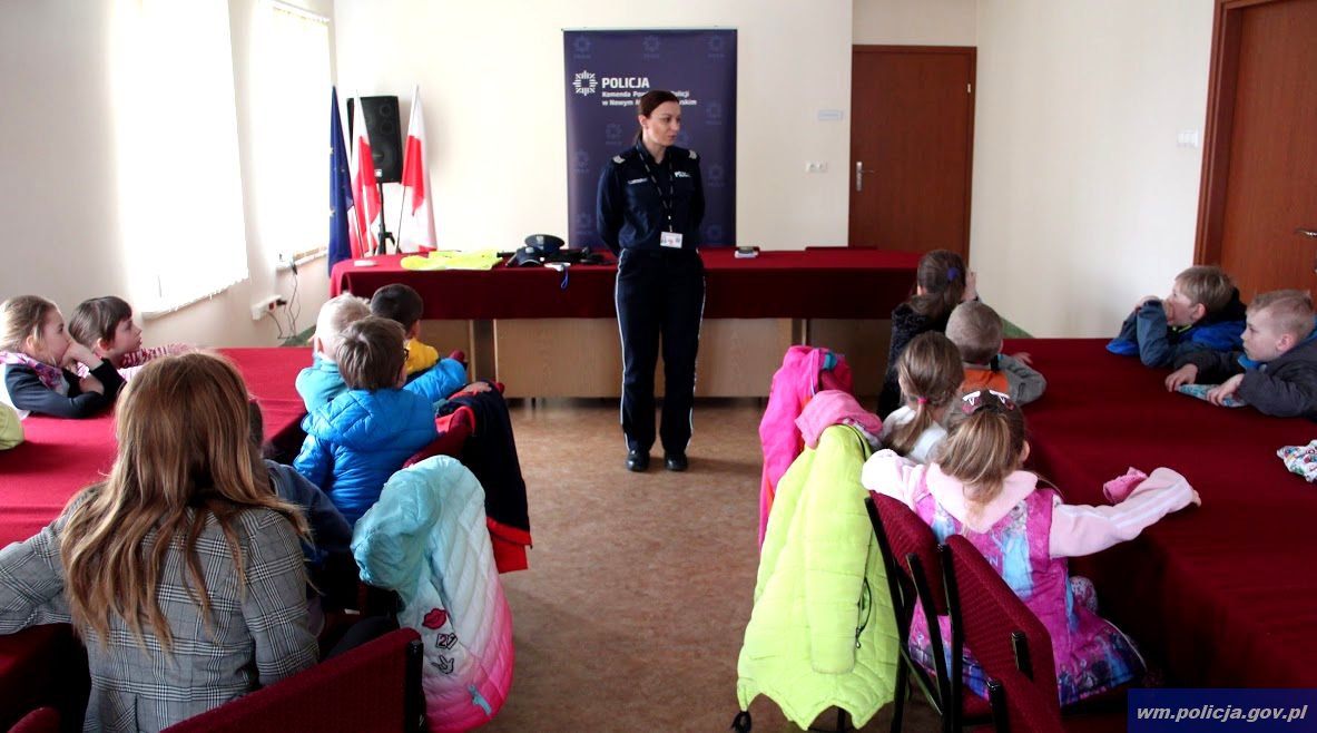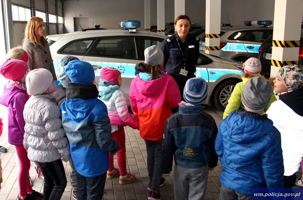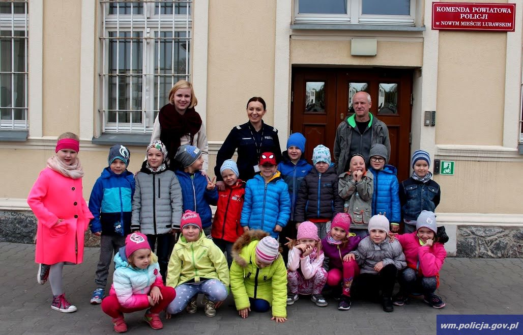 Wczoraj (27.04.2017) nowomiejską komendę policji odwiedziły przedszkolaki ze Szkoły Podstawowej nr 1 im. Jana Pawła II w Nowym Mieście Lubawskim. Spotkanie funkcjonariusze rozpoczęli w sali odpraw poruszając najważniejszą kwestię, czyli bezpieczeństwo najmłodszych. Dzieci uważnie słuchały cennych rad. Policjanci przypomnieli także maluchom o ważnej roli ''odblasków''.