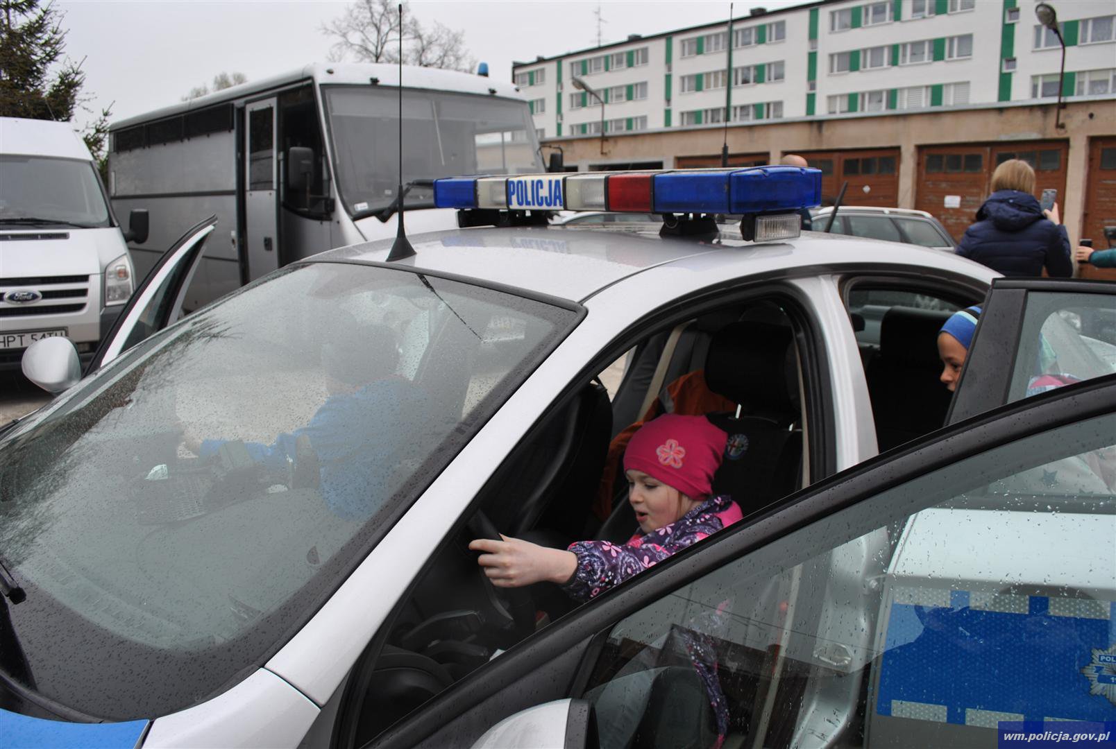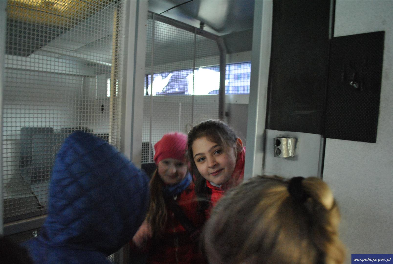 Dzieci wyczekiwały momentu kiedy będą mogły wsiąść do radiowozu drogówki. Uczniowie zobaczyli quad, który funkcjonariusze wykorzystują do służby w trudnym terenie, dzieci mogły też wsiadać na motocykl i obejrzeć go z każdej strony. Kolejki ustawiały się do każdego z prezentowanych pojazdów. Dzięki życzliwości policjantów z Wydziału Konwojowego dzieci miały możliwość sprawdzenia jak i czym przewozi się osoby pozbawione wolności, obejrzały autobus konwojowy. Kolejne drzwi, które otworzyły się przed dziećmi pokazały im jak wygląda policyjny areszt, nikt z nich nie chciał w nim zostać na dłużej...