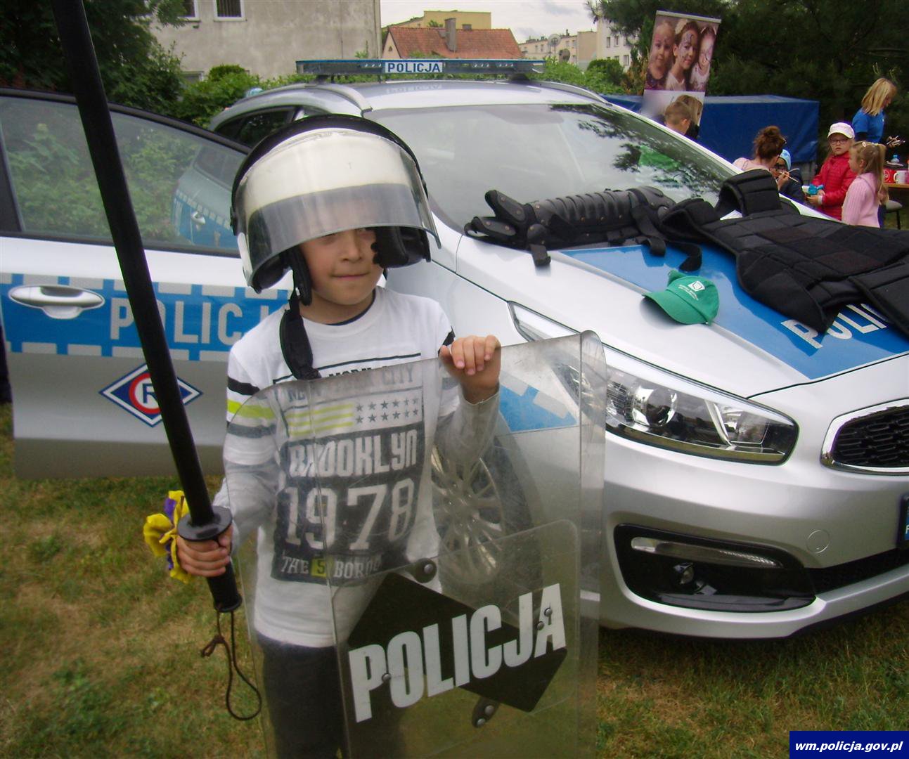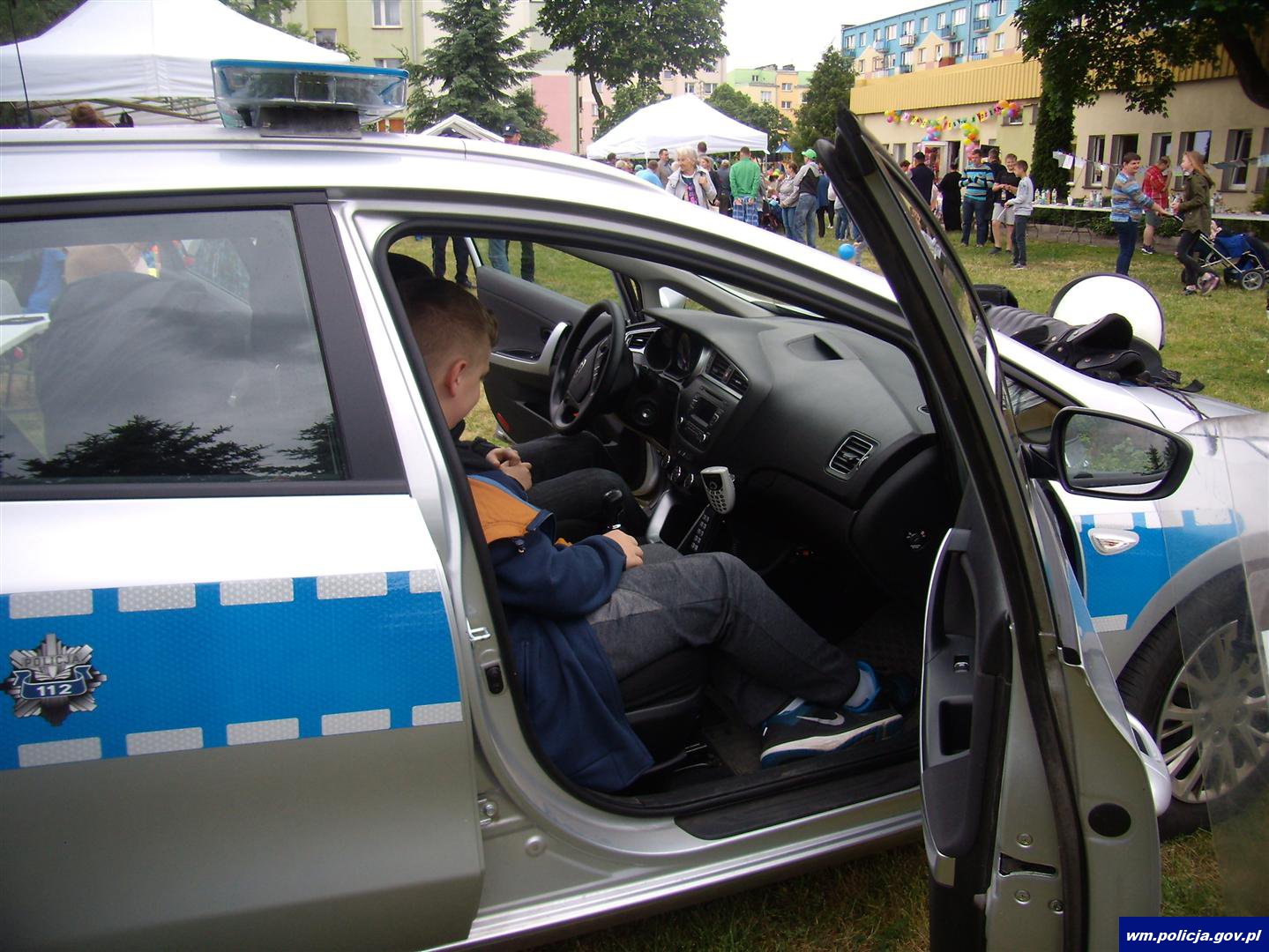 Festyn rozpoczął się od wjazdu na plac radiowozu na sygnałach, co od razu wzbudziło zainteresowanie najmłodszych. Policyjnym autem przyjechali dzielnicowi. Piską policję reprezentował także Komendant Powiatowy Policji w Piszu, mł. insp. Radosław Drach oraz Komendant Komisariatu Policji w Białej Piskiej, podkom. Artur Modzelewski.
