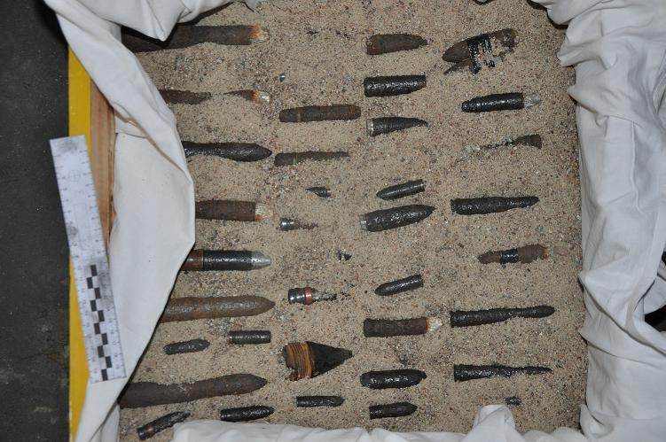 Ponadto policjanci ustalili, że również w wynajmowanym przez właściciela mieszkania, garażu, znajdowały się skorodowane łuski pocisków w ilości 12 sztuk oraz 5 kompletów nawierconych pocisków.